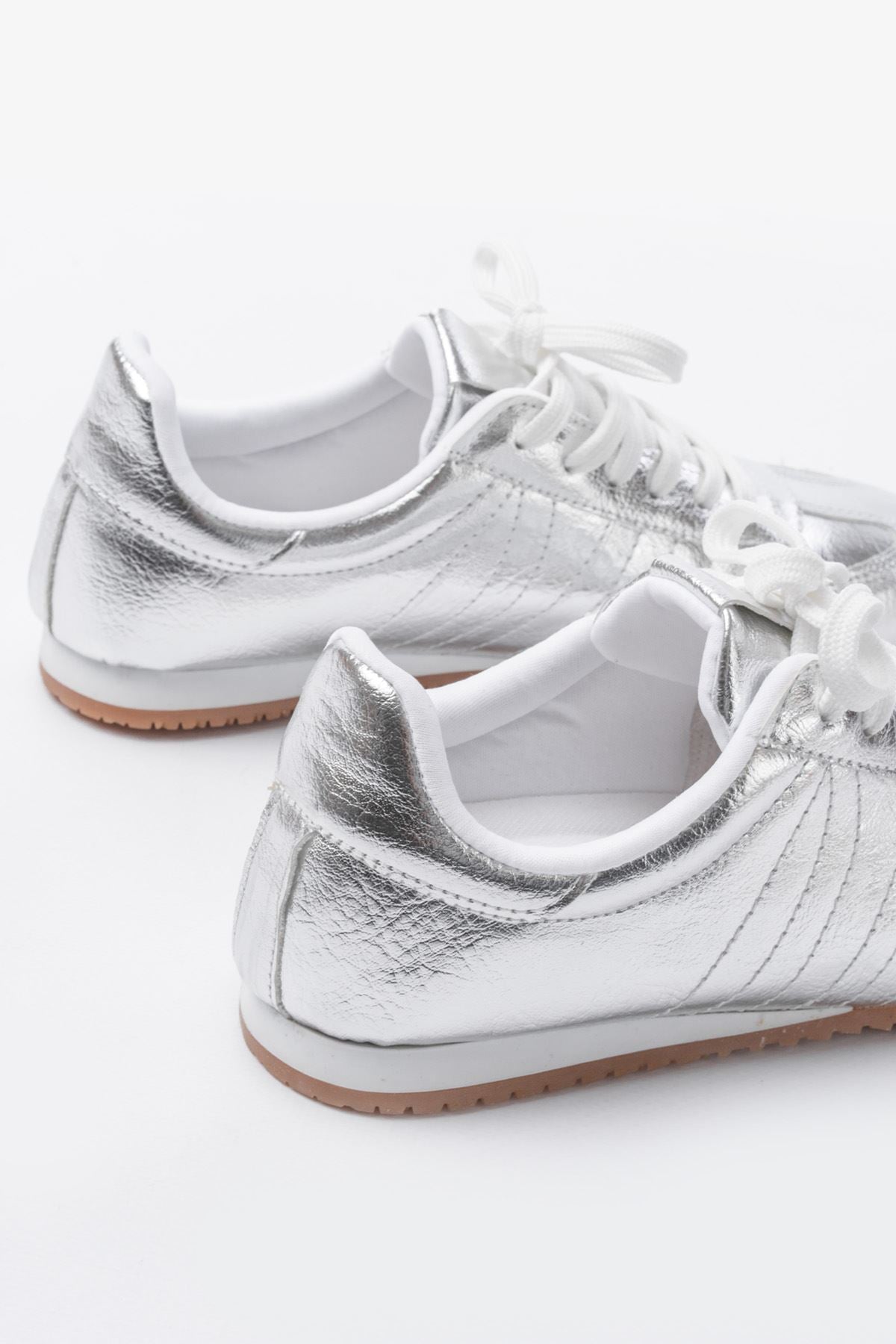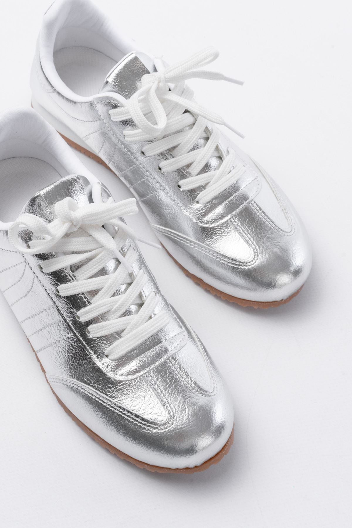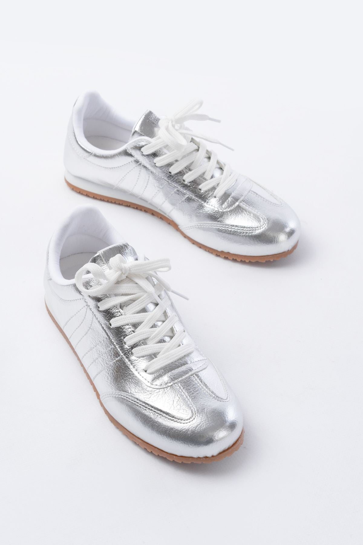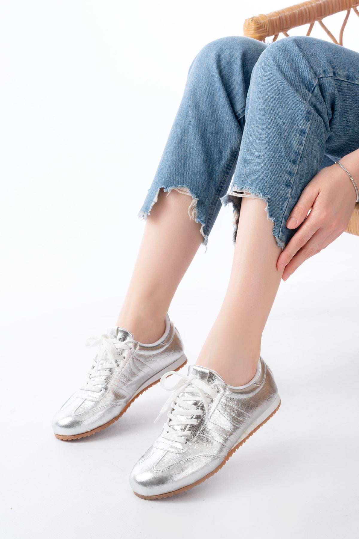 - Şıklık ve konforu bir arada sunan Ayakkabı Aşkı gümüş sneaker, günlük kombinlerinize zarif bir dokunuş katar.
