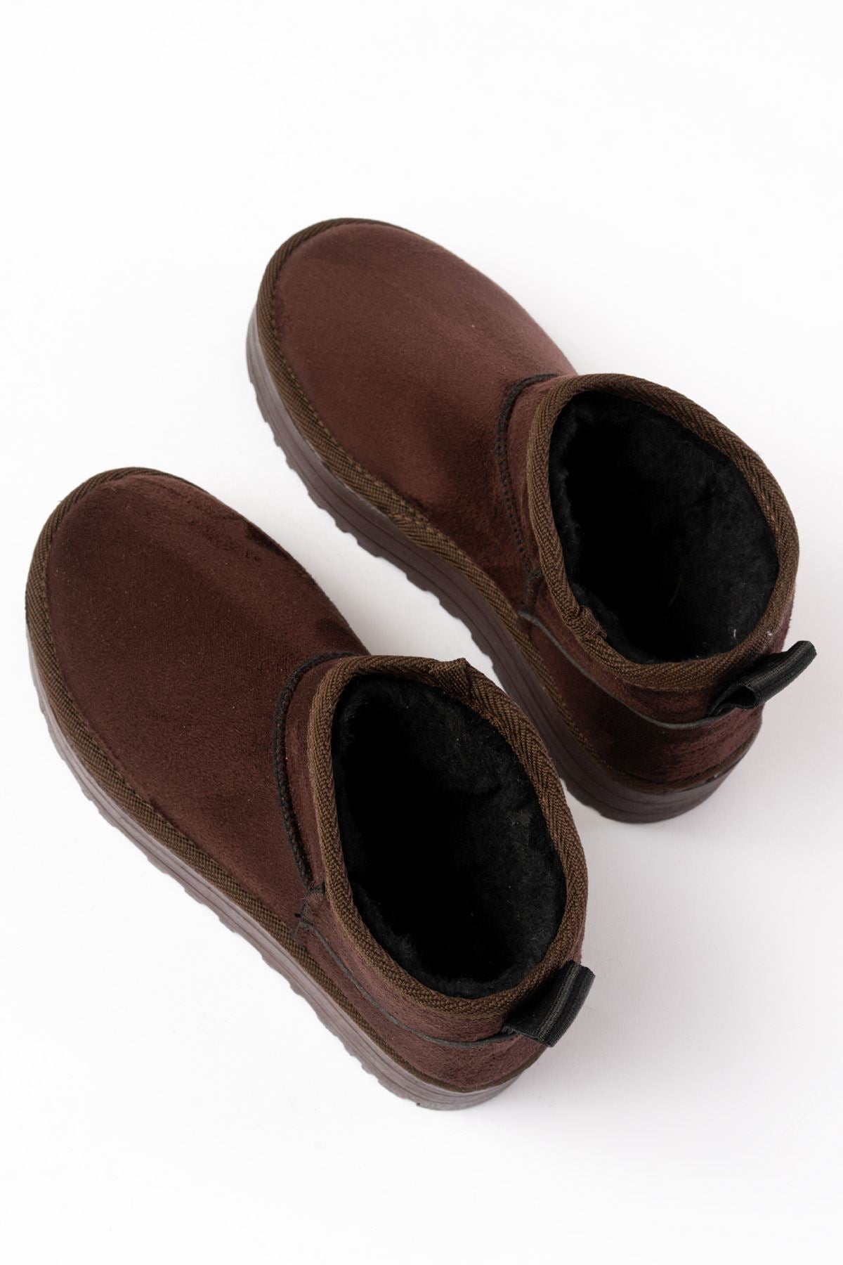 Ayakkabı Aşkı Kahverengi Süet İçi Kürklü Kışlık Kapalı Burun Kadın Günlük Terlik