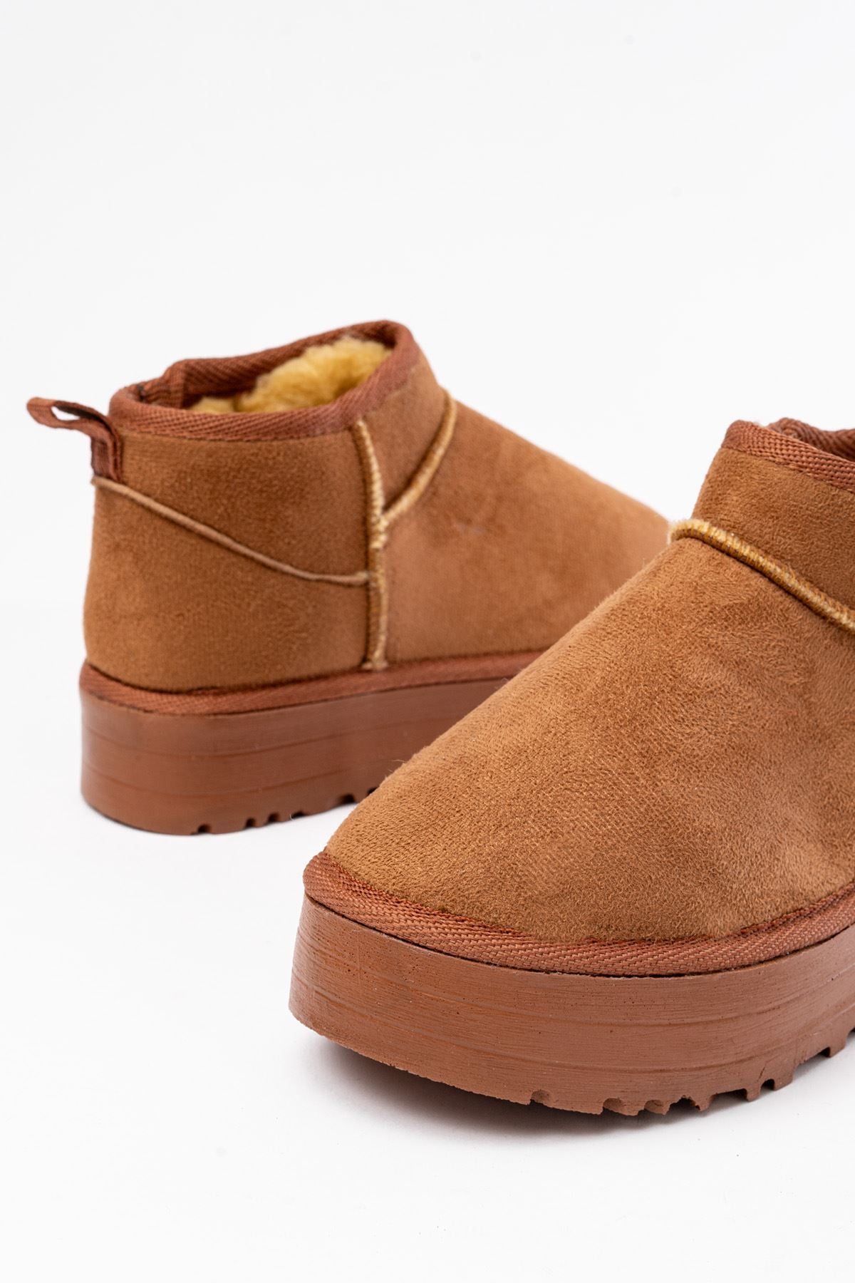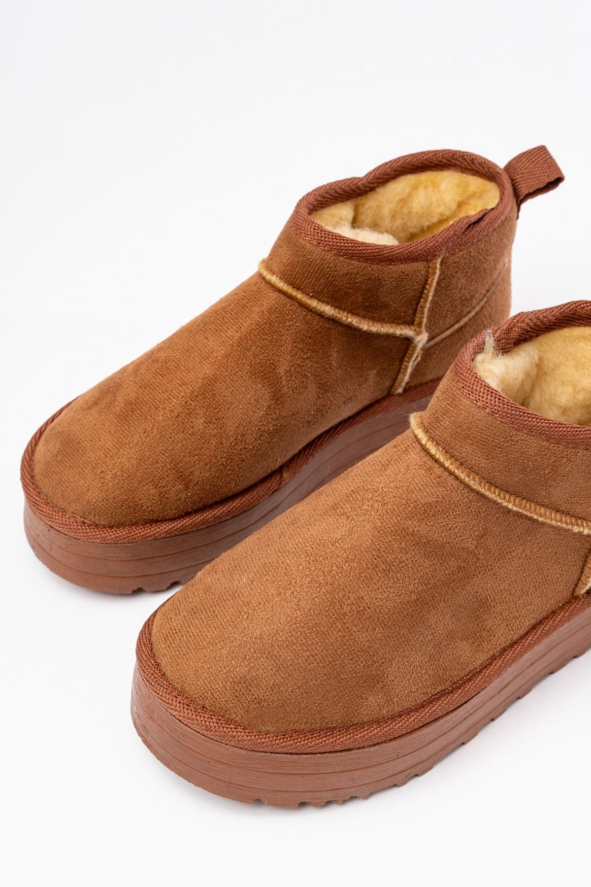Ayakkabı Aşkı Taba Süet İçi Kürklü Kışlık Kapalı Burun Kadın Günlük Terlik