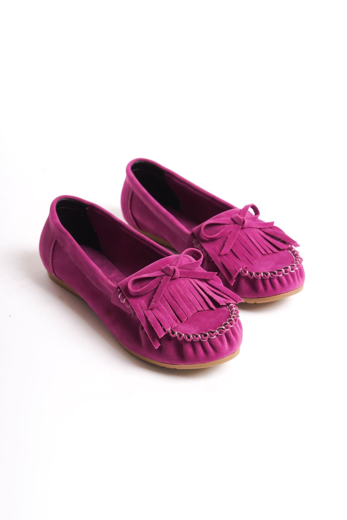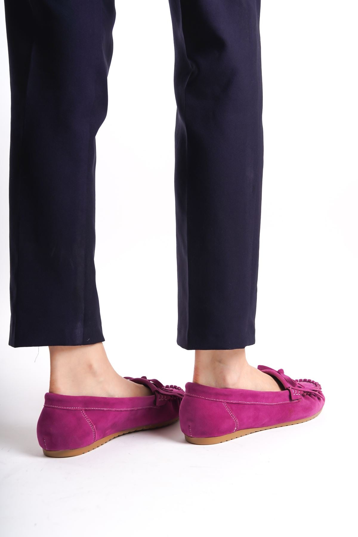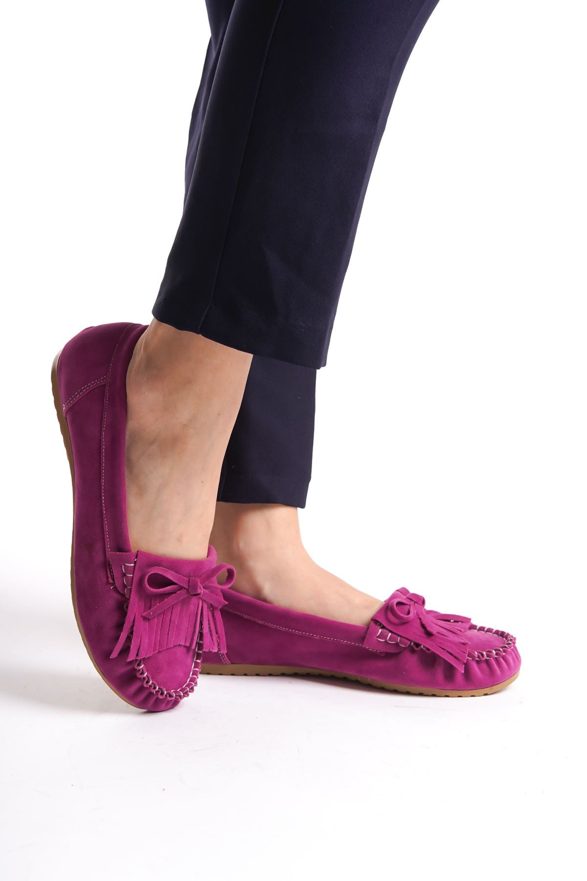Ayakkabı Aşkı Fuşya Süet Püsküllü Günlük Kadın Babet