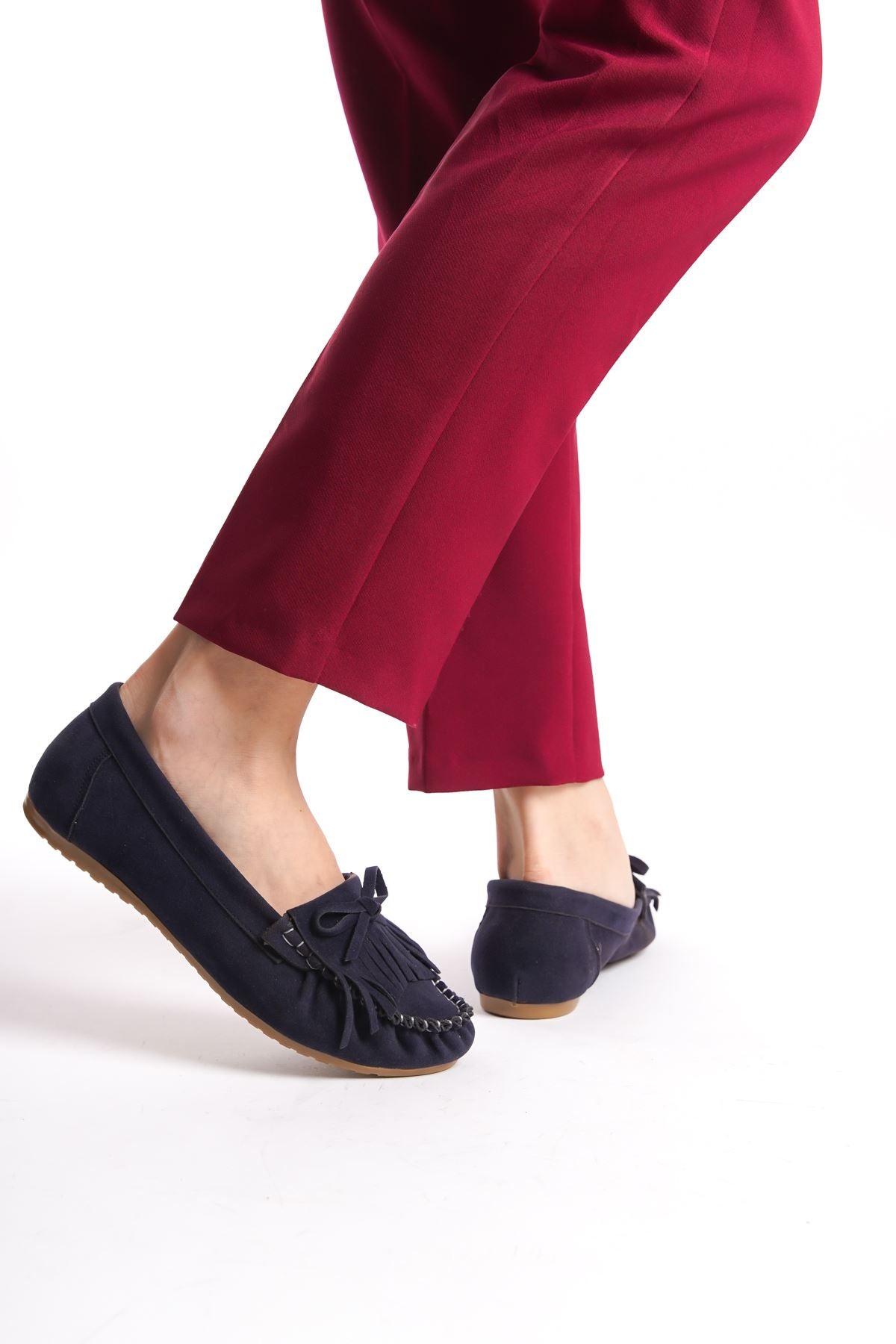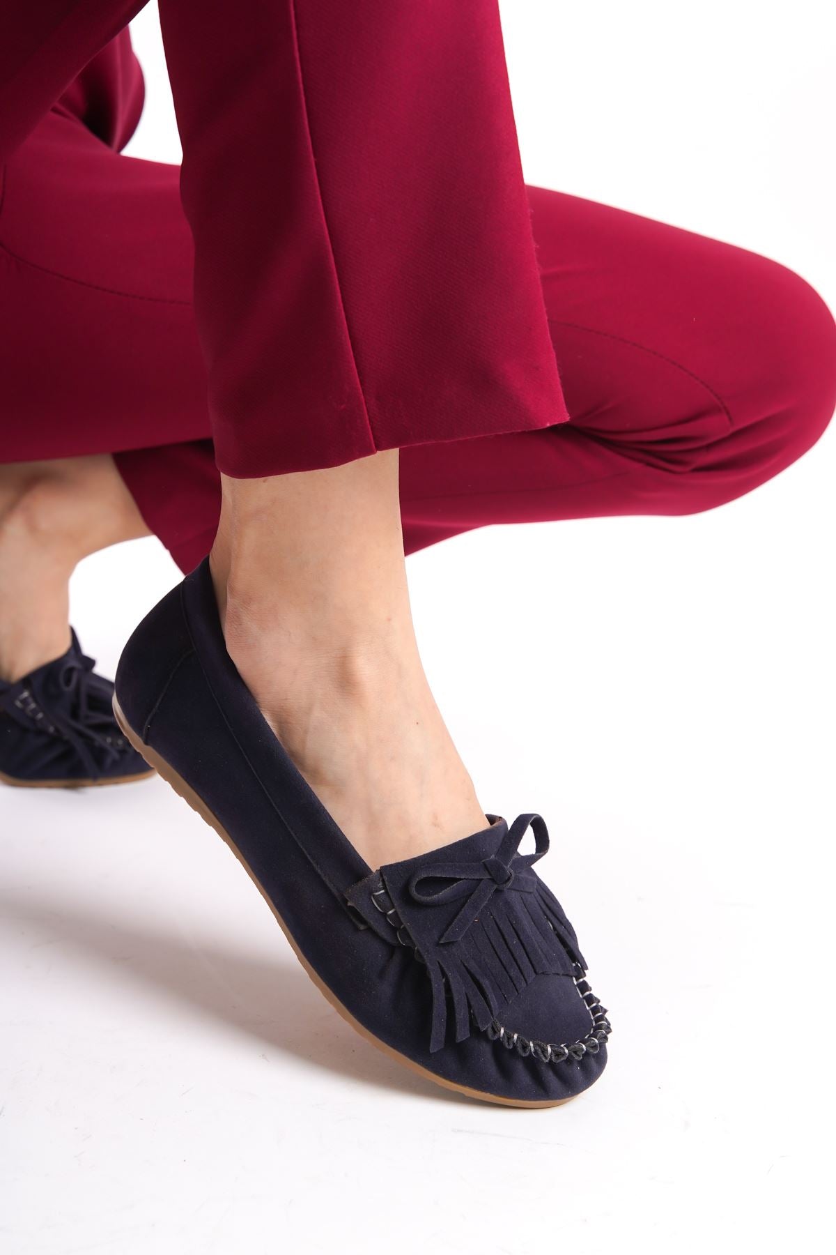 Ayakkabı Aşkı Lacivert Süet Püsküllü Günlük Kadın Babet