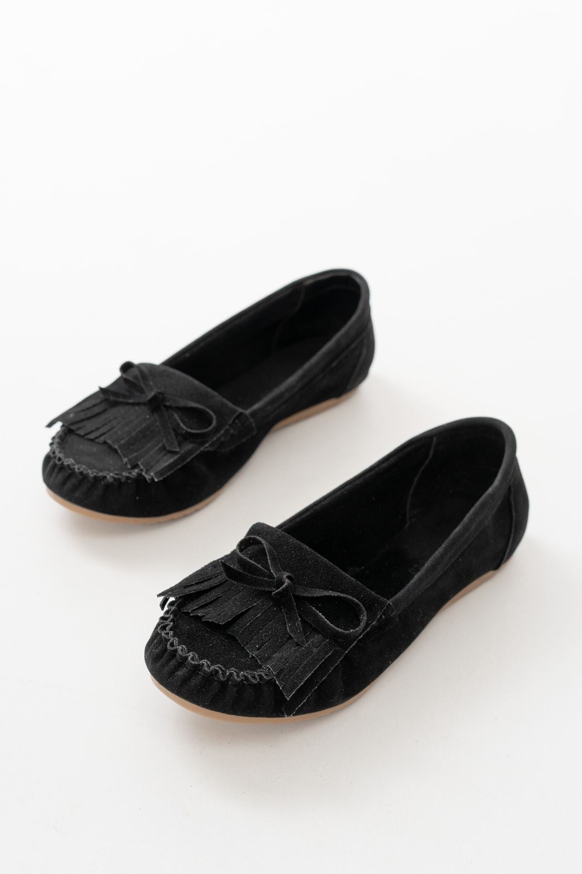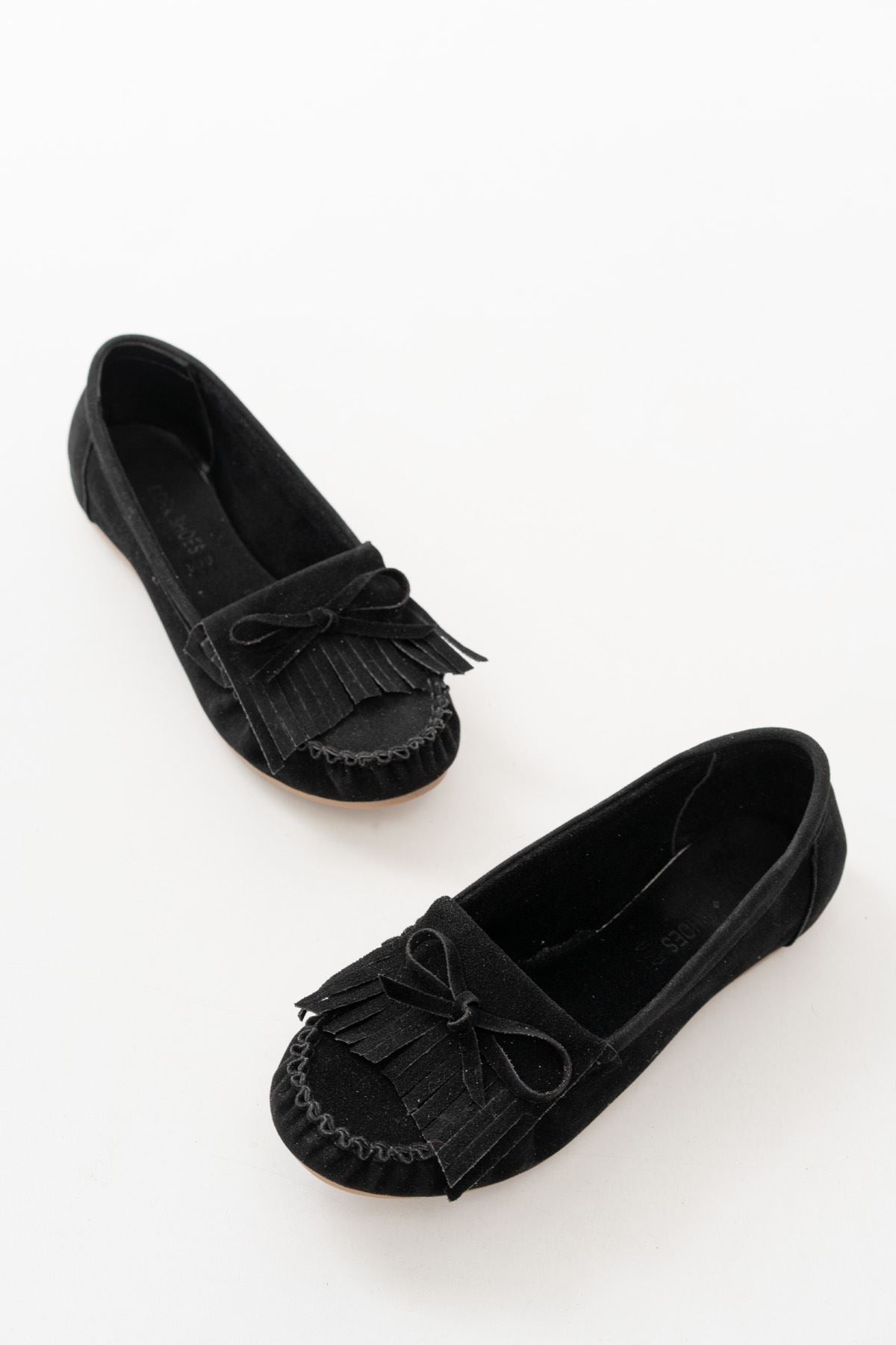 Ayakkabı Aşkı Siyah Süet Püsküllü Günlük Kadın Babet