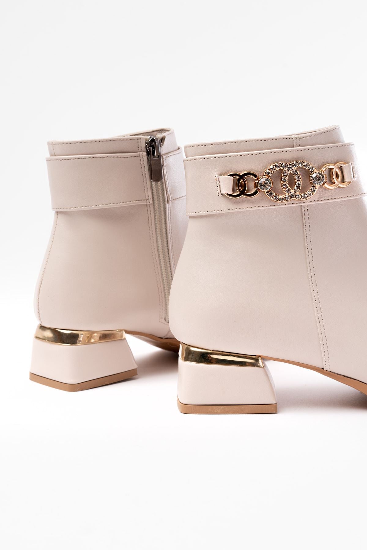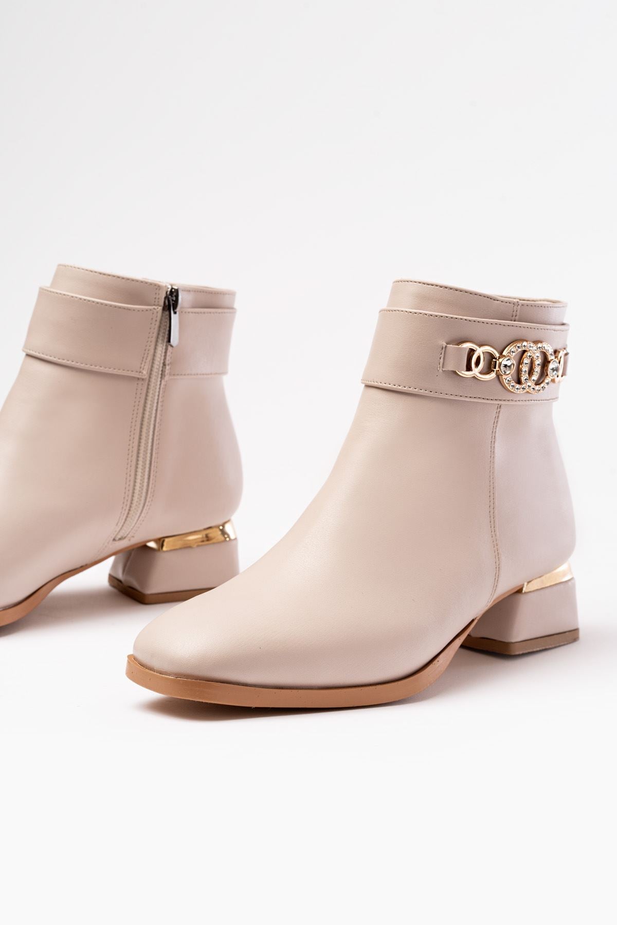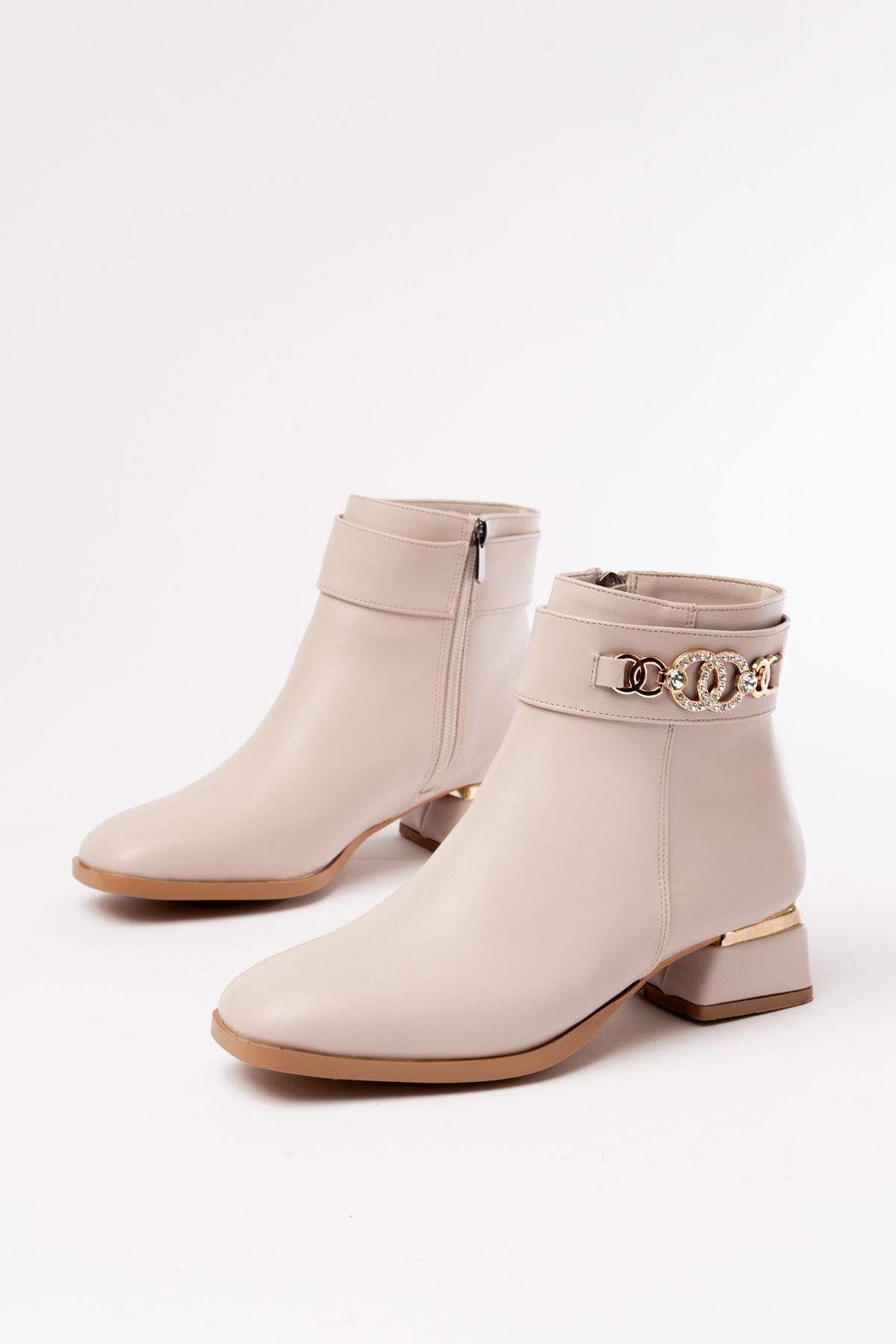 Ayakkabı Aşkı Bej Toka Aksesuarlı Topuklu Fermuarlı Günlük Kadın Bot