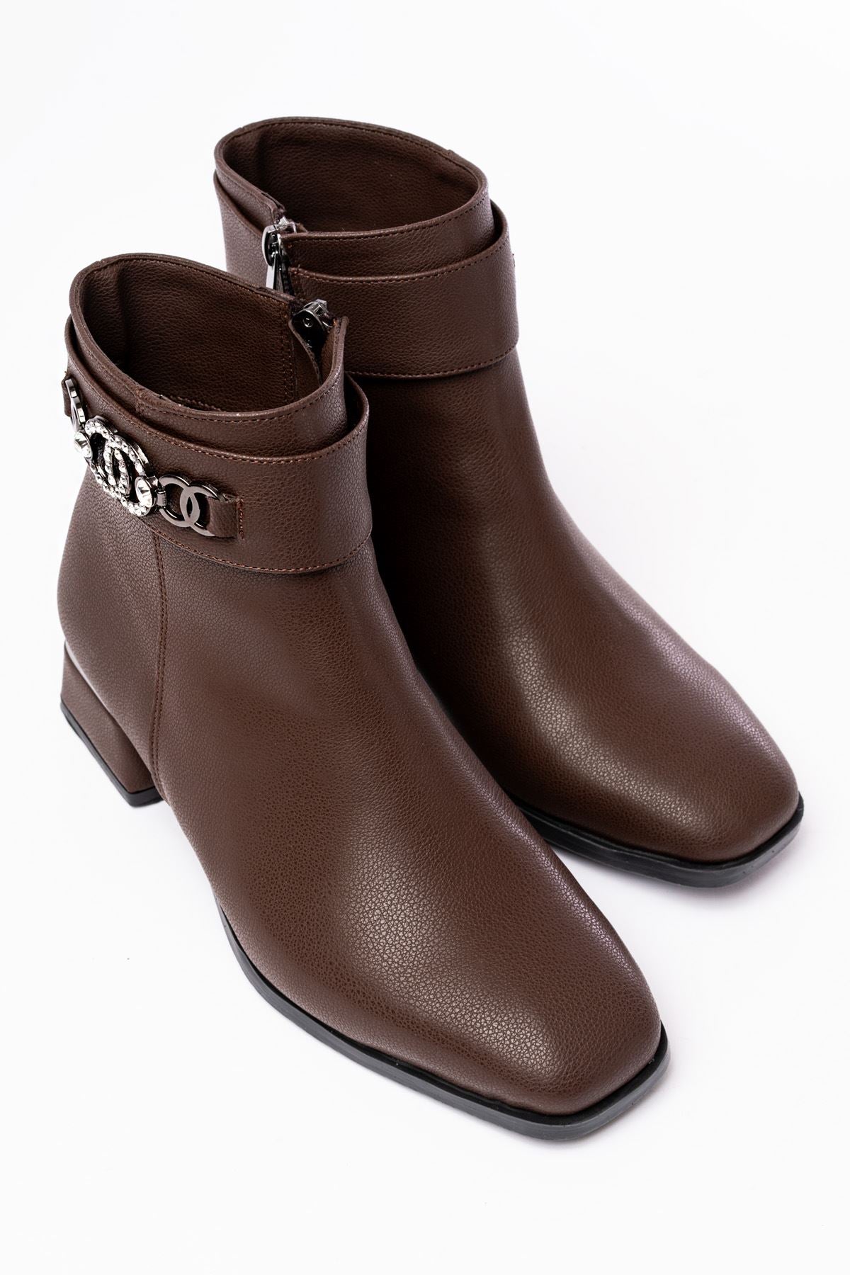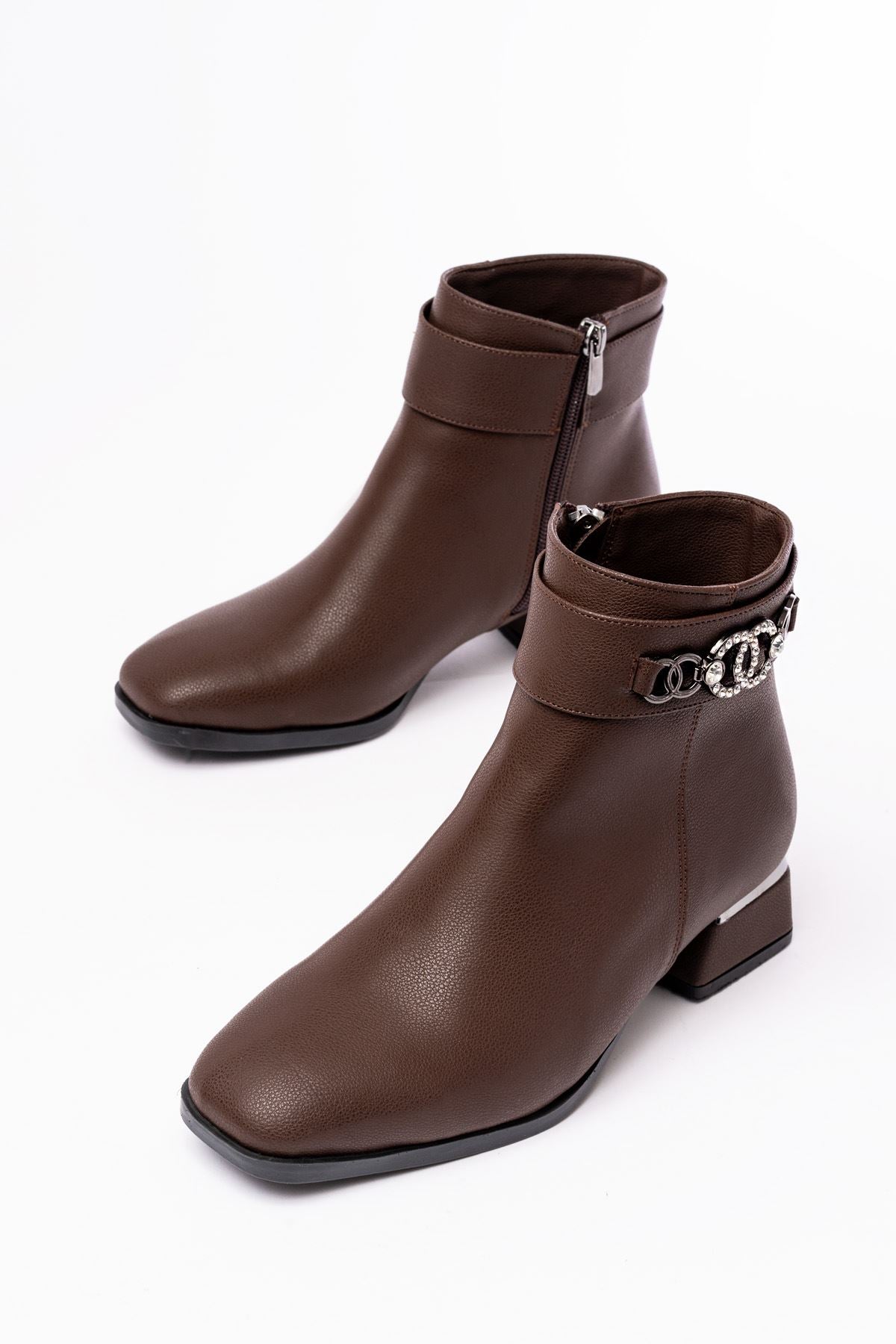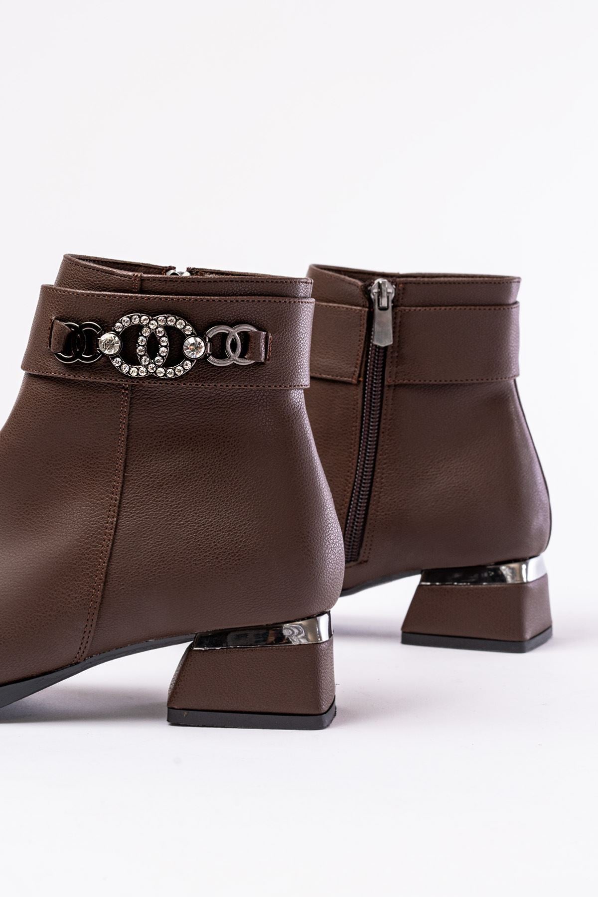 Ayakkabı Aşkı Kahverengi Toka Aksesuarlı Topuklu Fermuarlı Günlük Kadın Bot