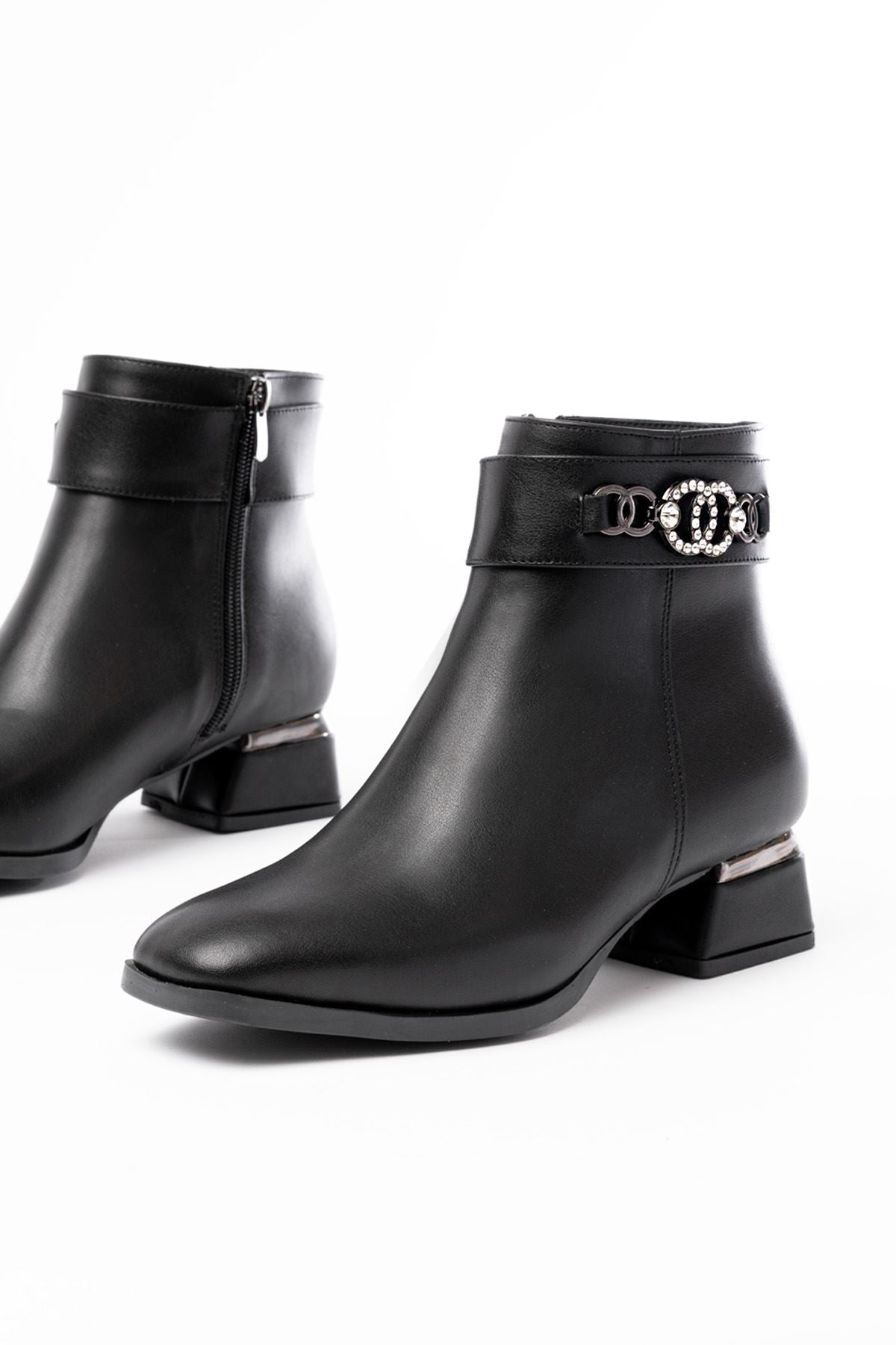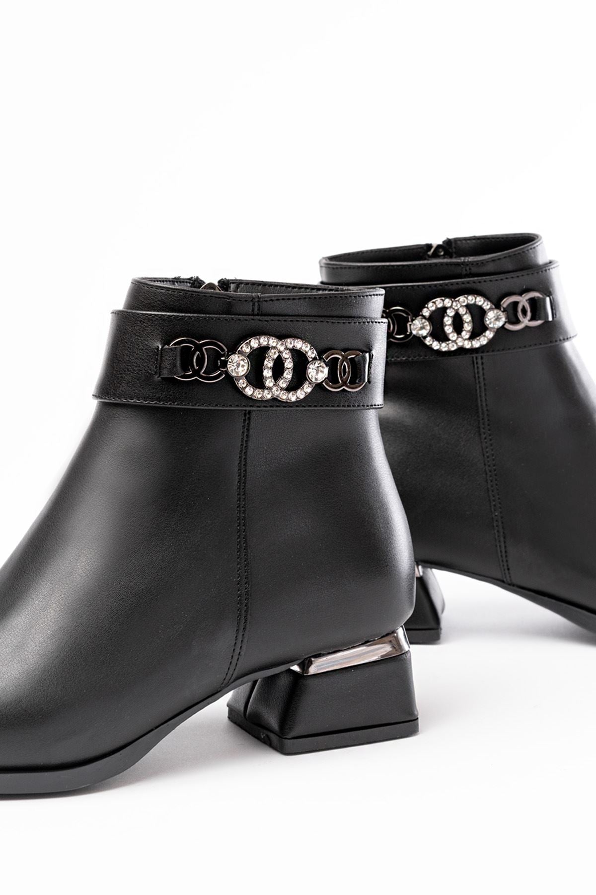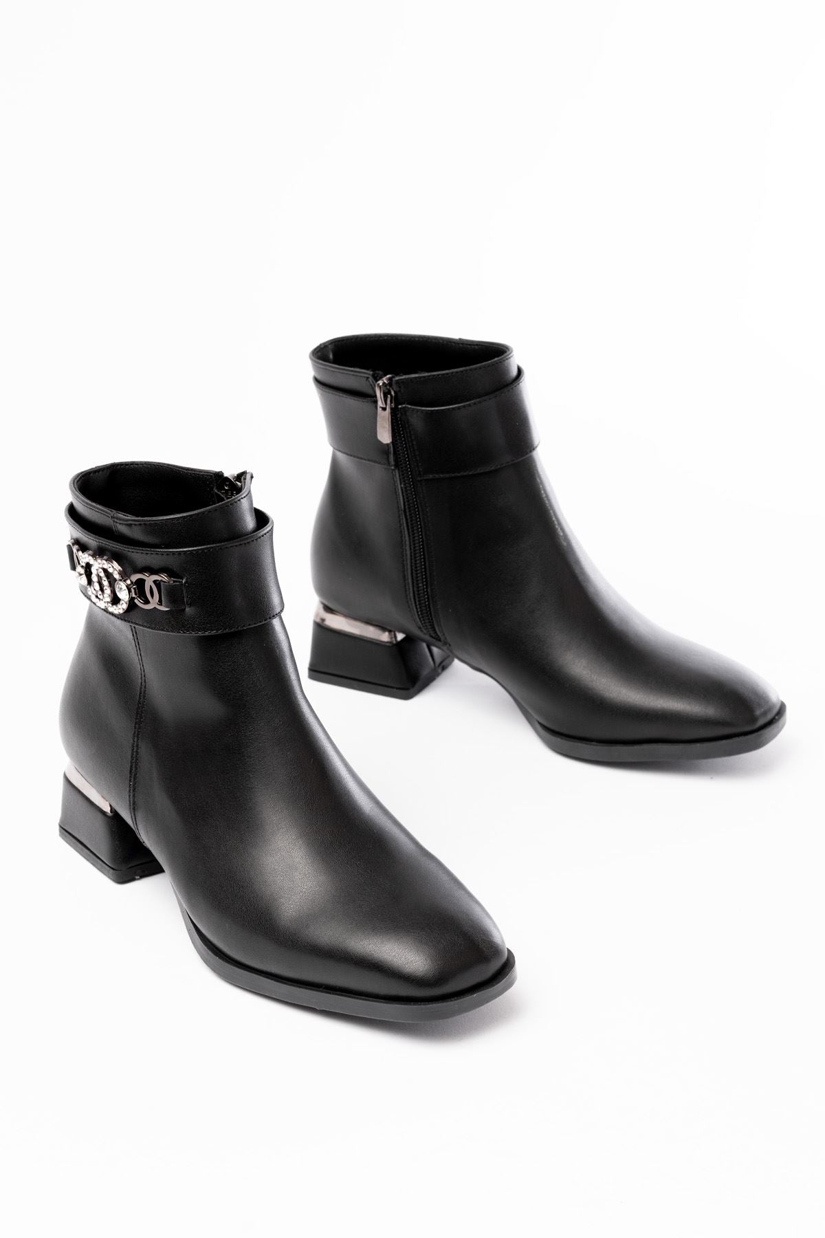 Ayakkabı Aşkı Siyah Toka Aksesuarlı Topuklu Fermuarlı Günlük Kadın Bot