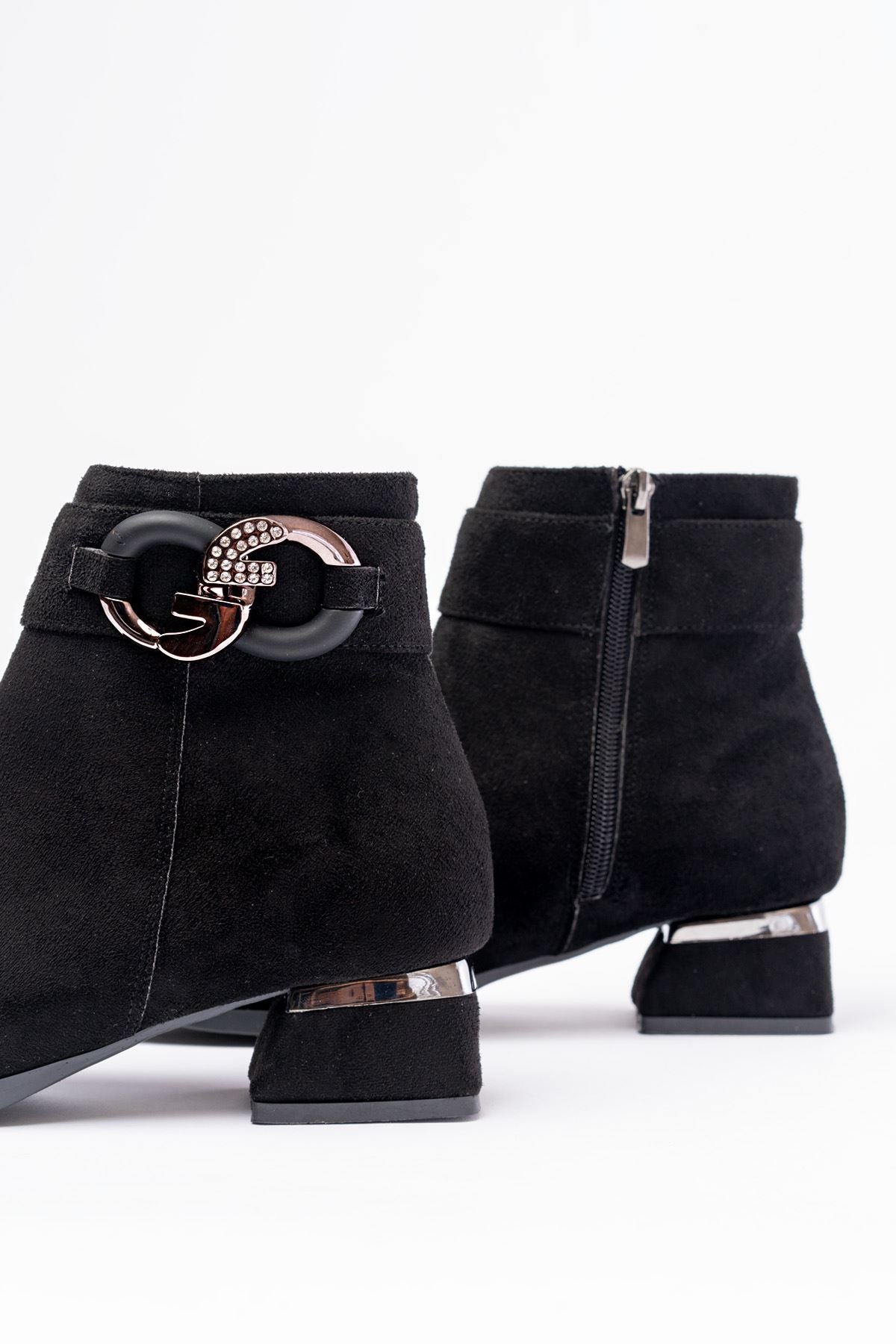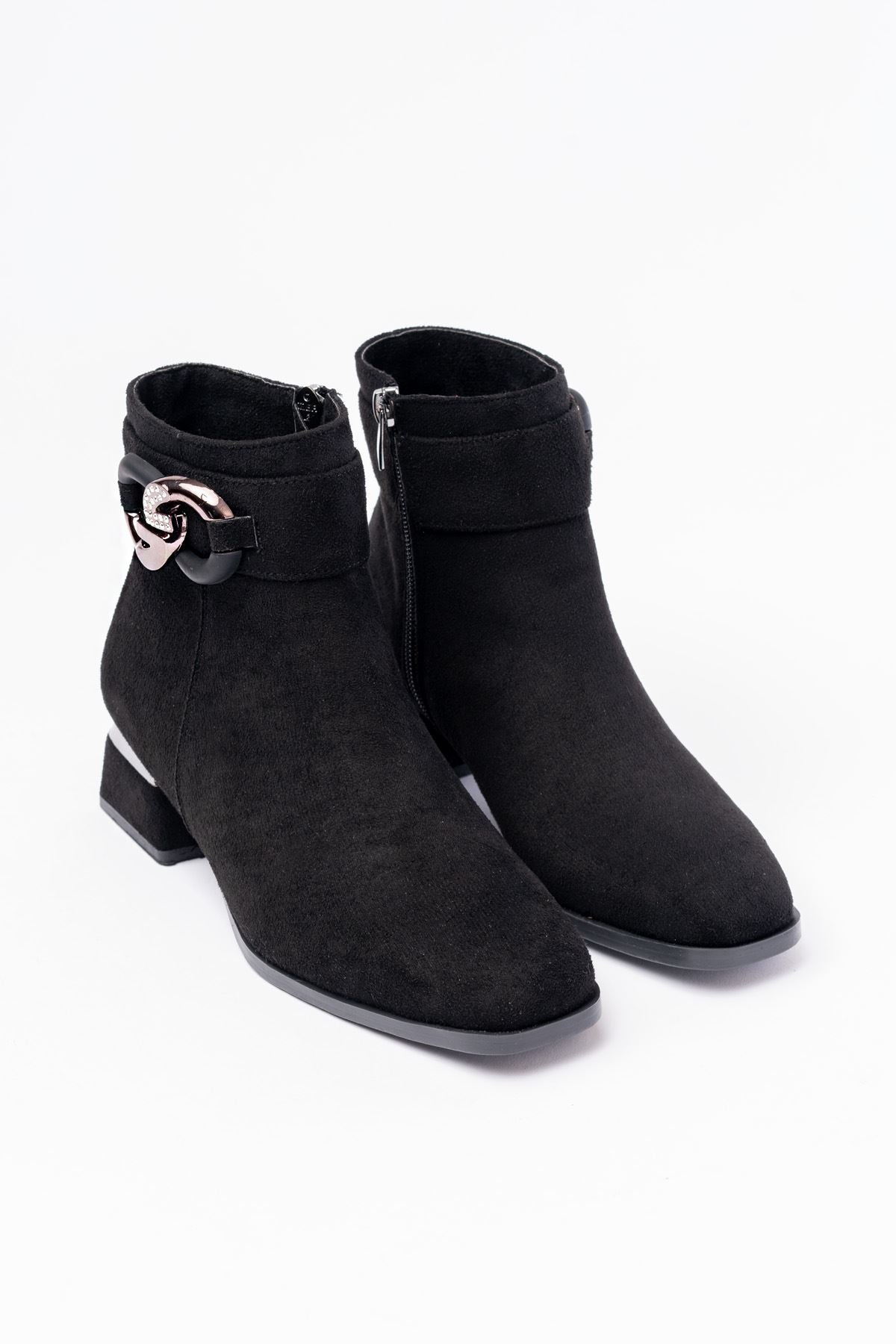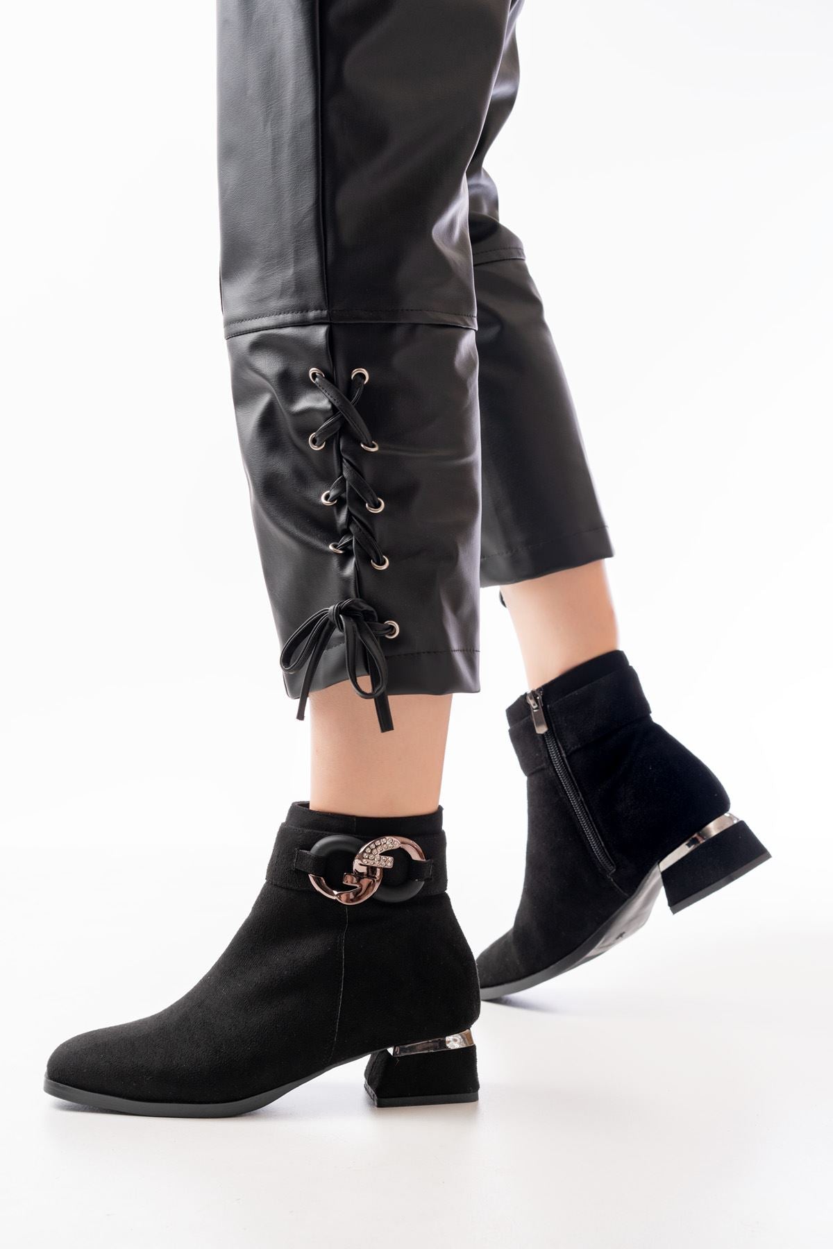 Ayakkabı Aşkı Siyah Süet Toka Aksesuarlı Topuklu Fermuarlı Günlük Kadın Bot
