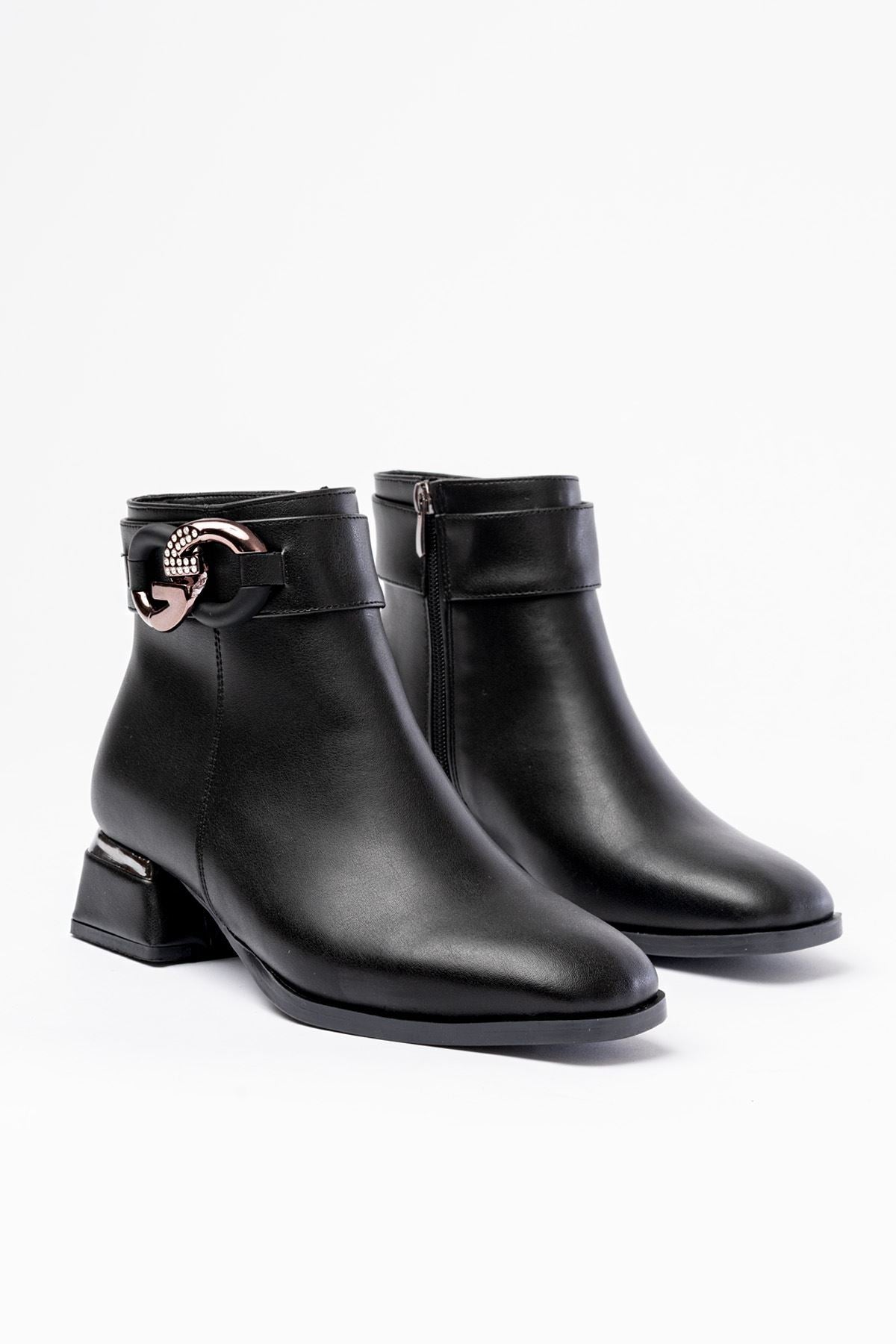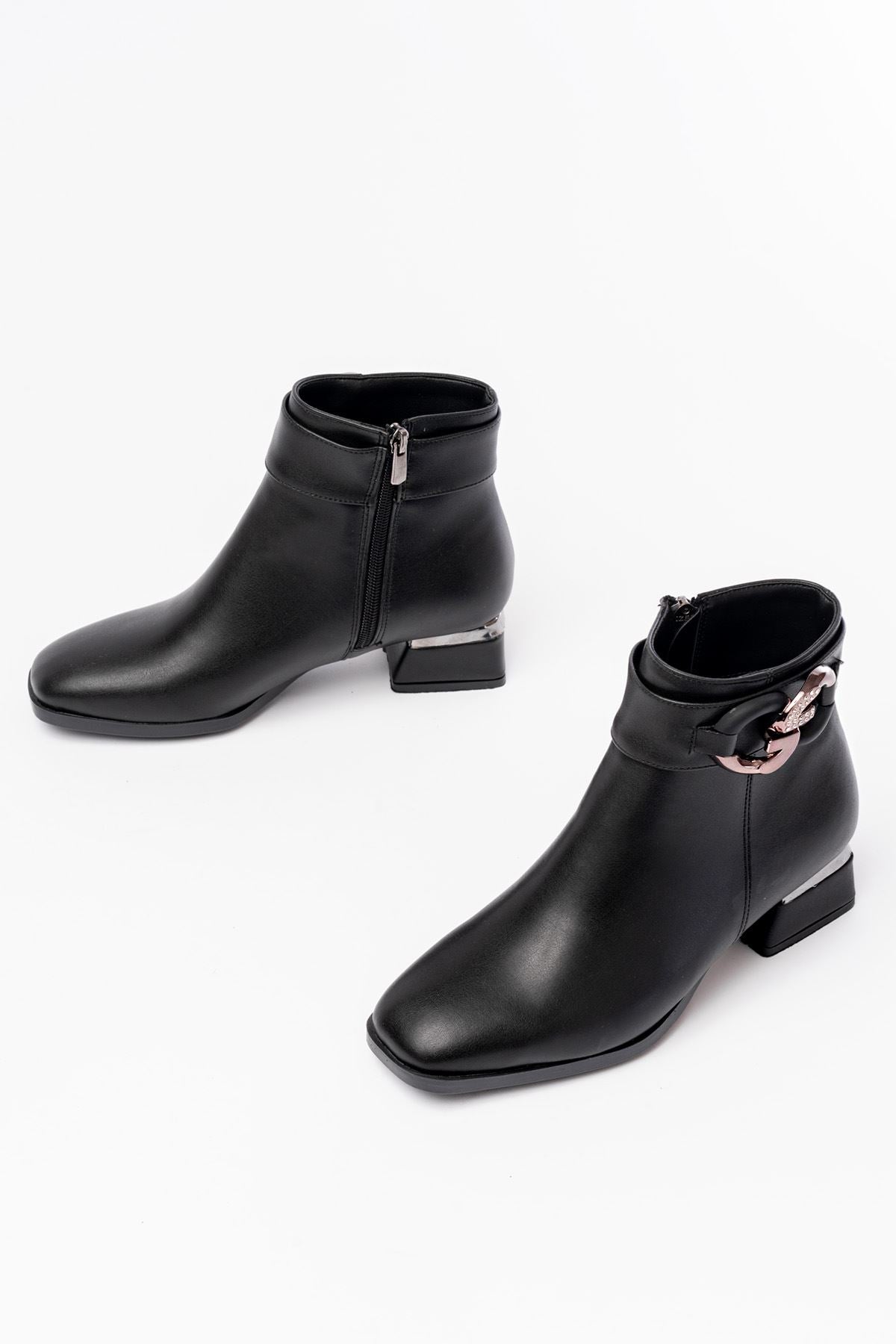 Ayakkabı Aşkı Siyah Toka Aksesuarlı Topuklu Fermuarlı Günlük Kadın Bot