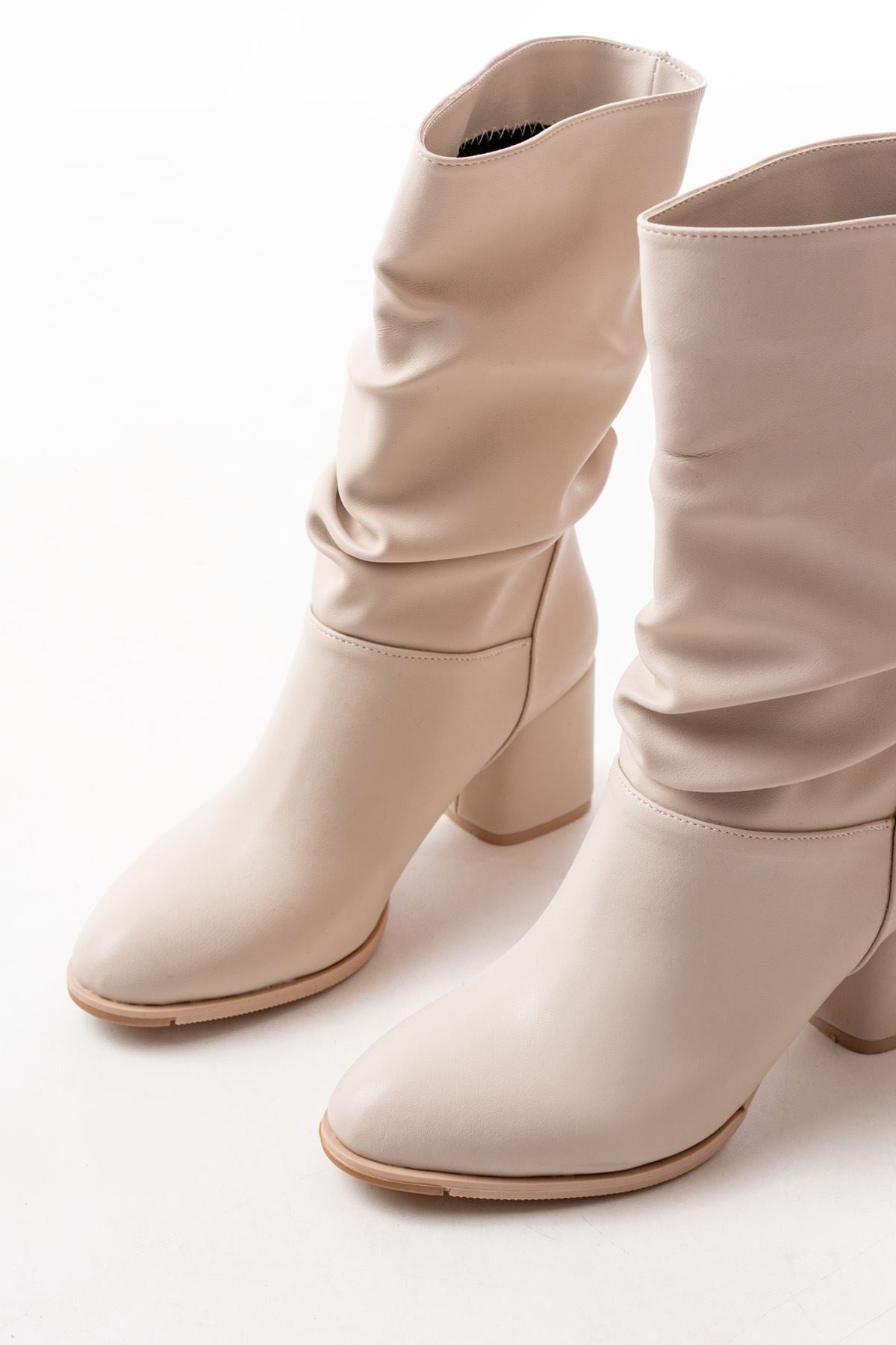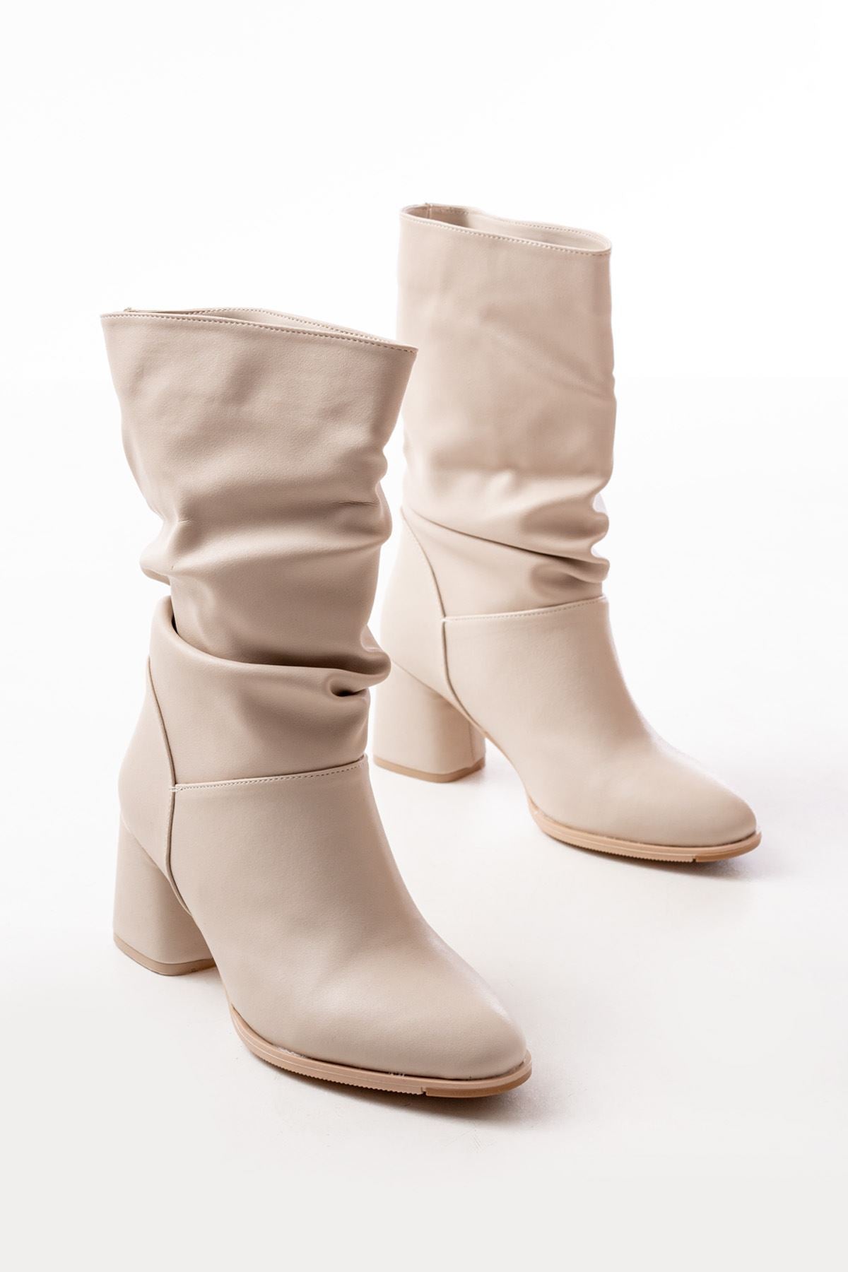Ayakkabı Aşkı Bej Topuklu Körüklü Günlük Kadın Bot