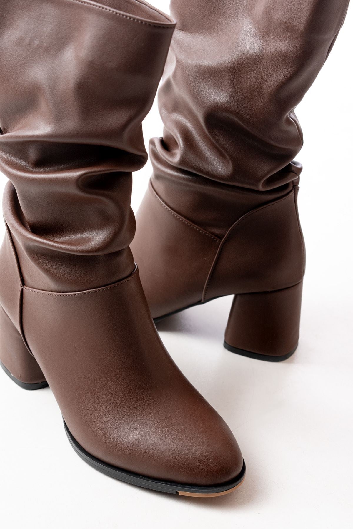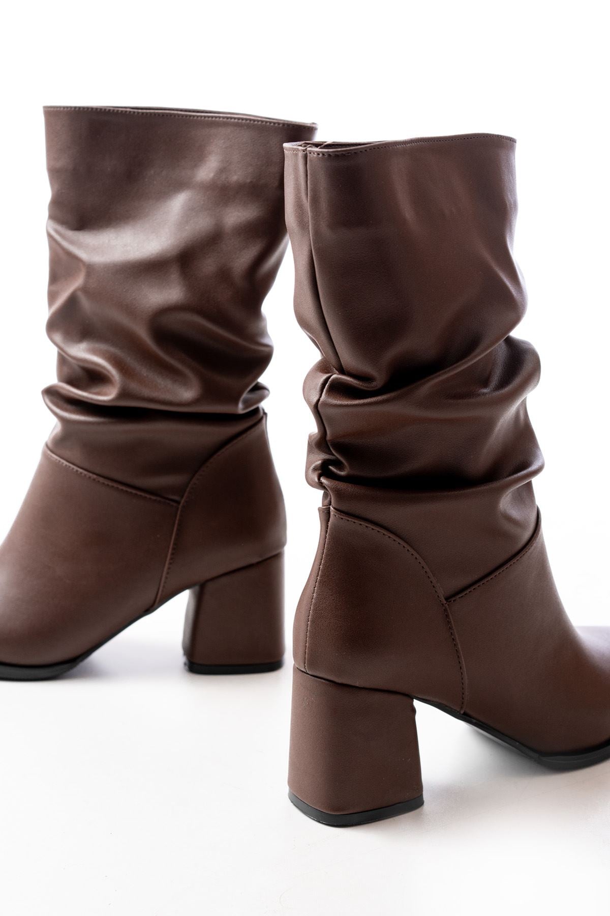 Ayakkabı Aşkı Kahverengi Topuklu Körüklü Günlük Kadın Bot