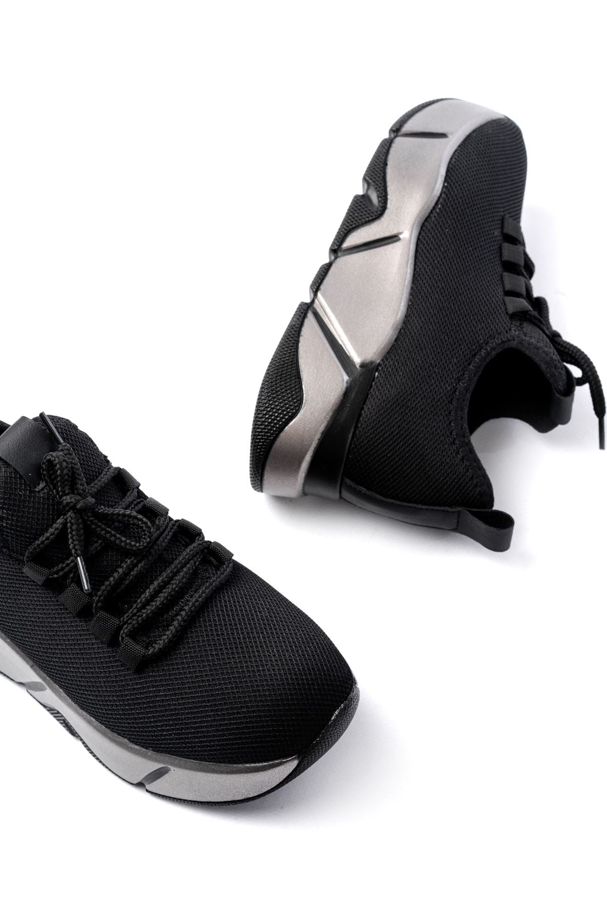 Ayakkabı Aşkı Siyah Bağcıklı Fileli Platin Taban Günlük Kadın Spor