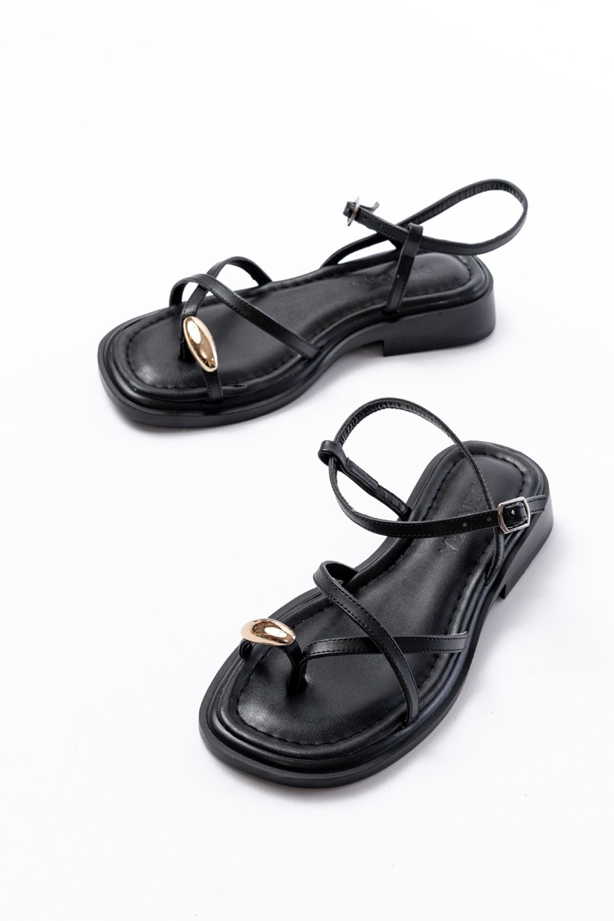 Ayakkabı Aşkı Siyah Parmak Arası Taş Detaylı Günlük Kadın Sandalet