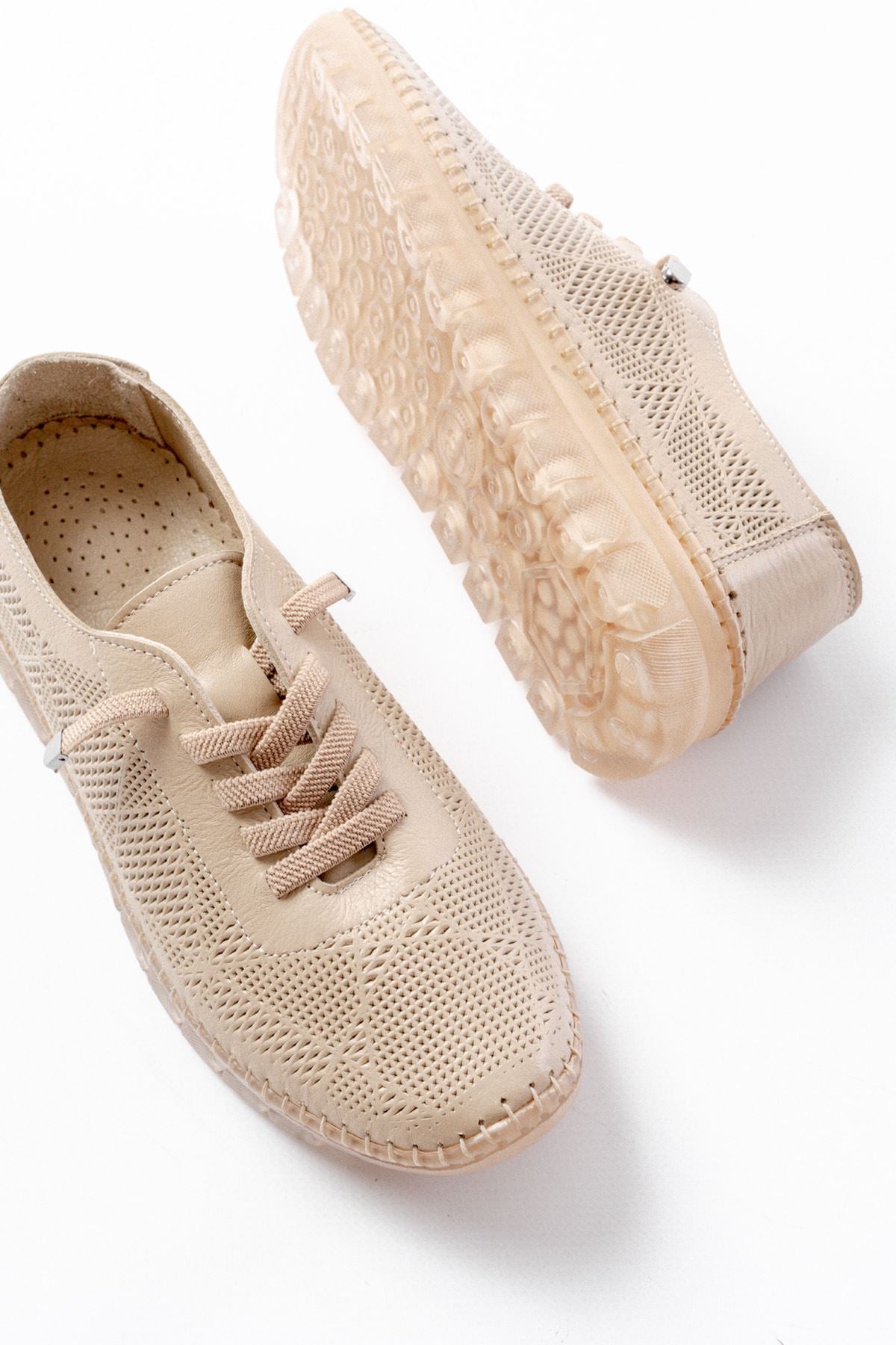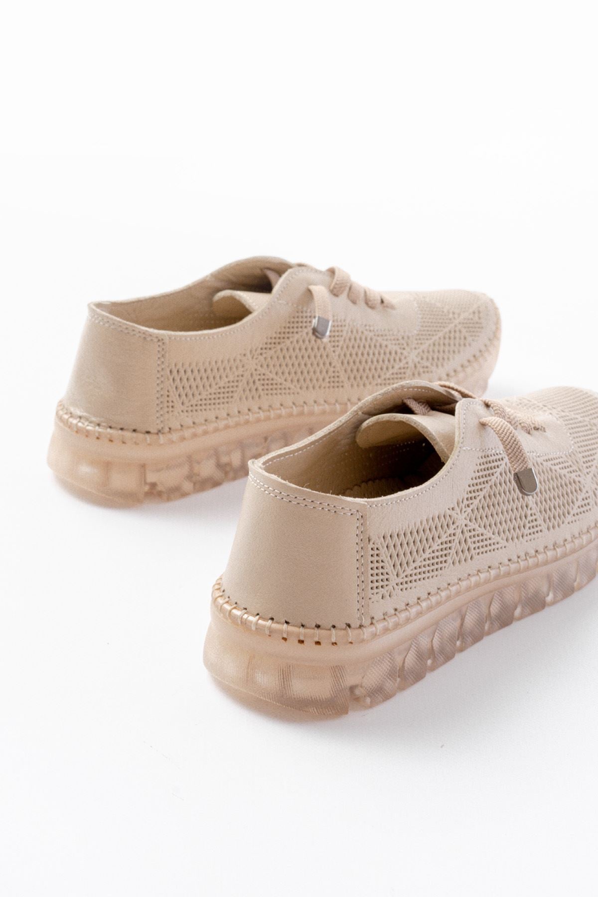 Ayakkabı Aşkı Bej Desenli Hakiki Deri Şeffaf Taban Kadın Spor Ayakkabı