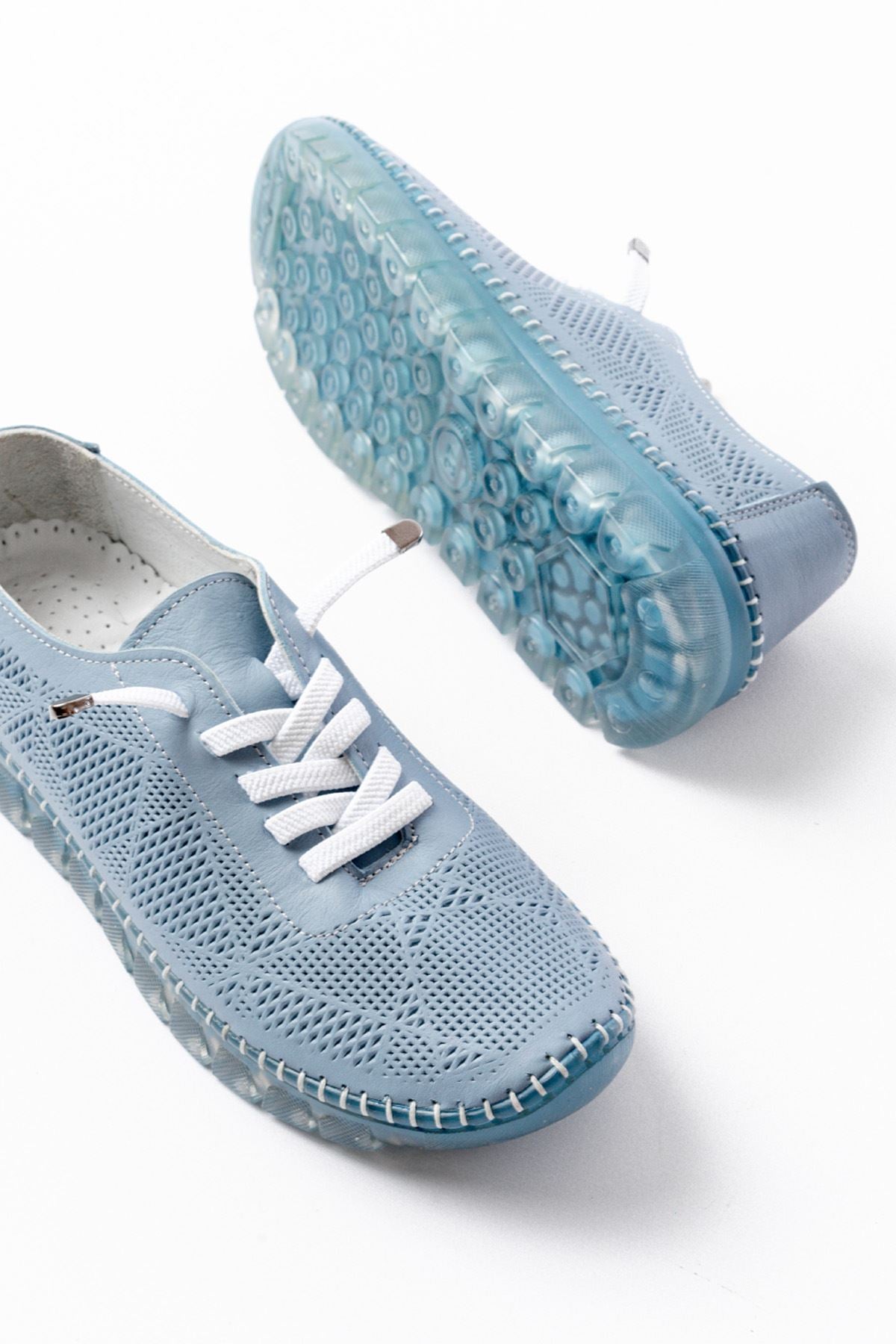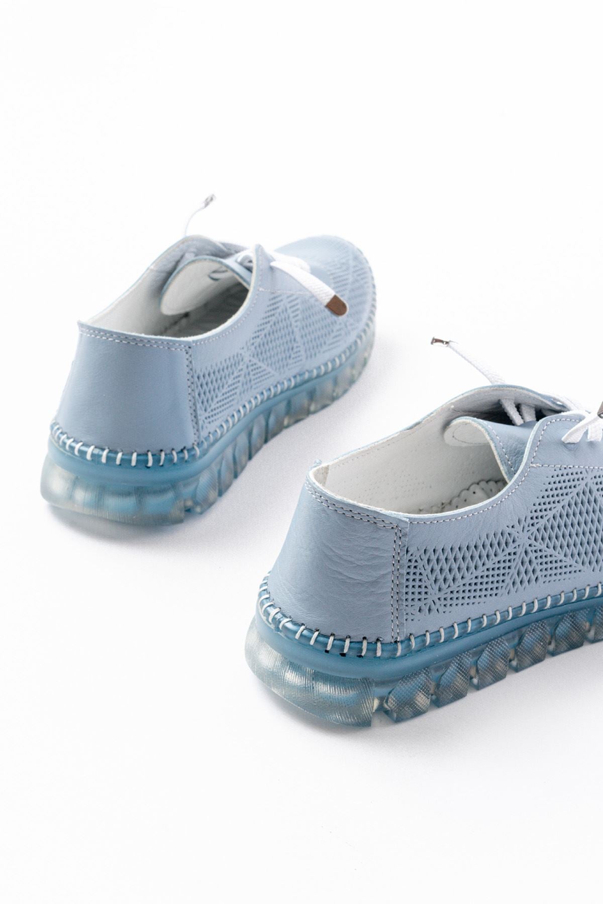 Ayakkabı Aşkı Mavi Desenli Hakiki Deri Şeffaf Taban Kadın Spor Ayakkabı
