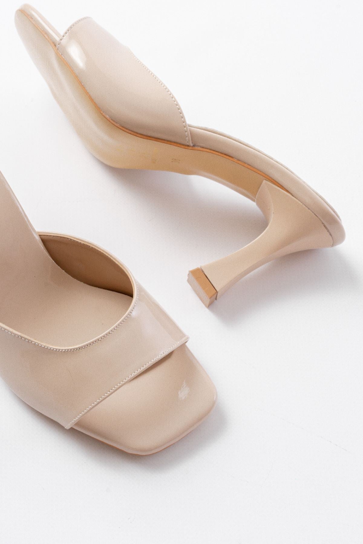 Ayakkabı Aşkı Bej Rugan Günlük Topuklu Kadın Terlik