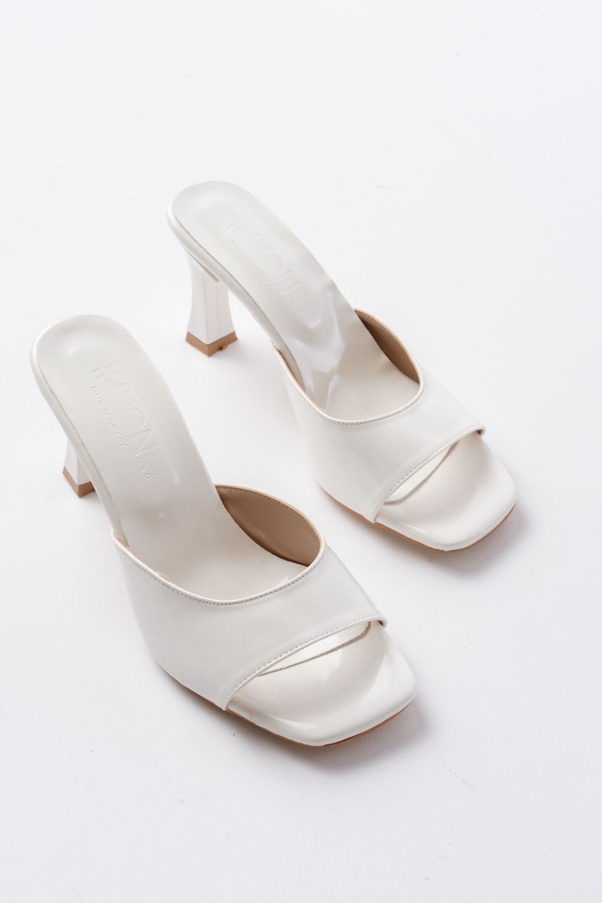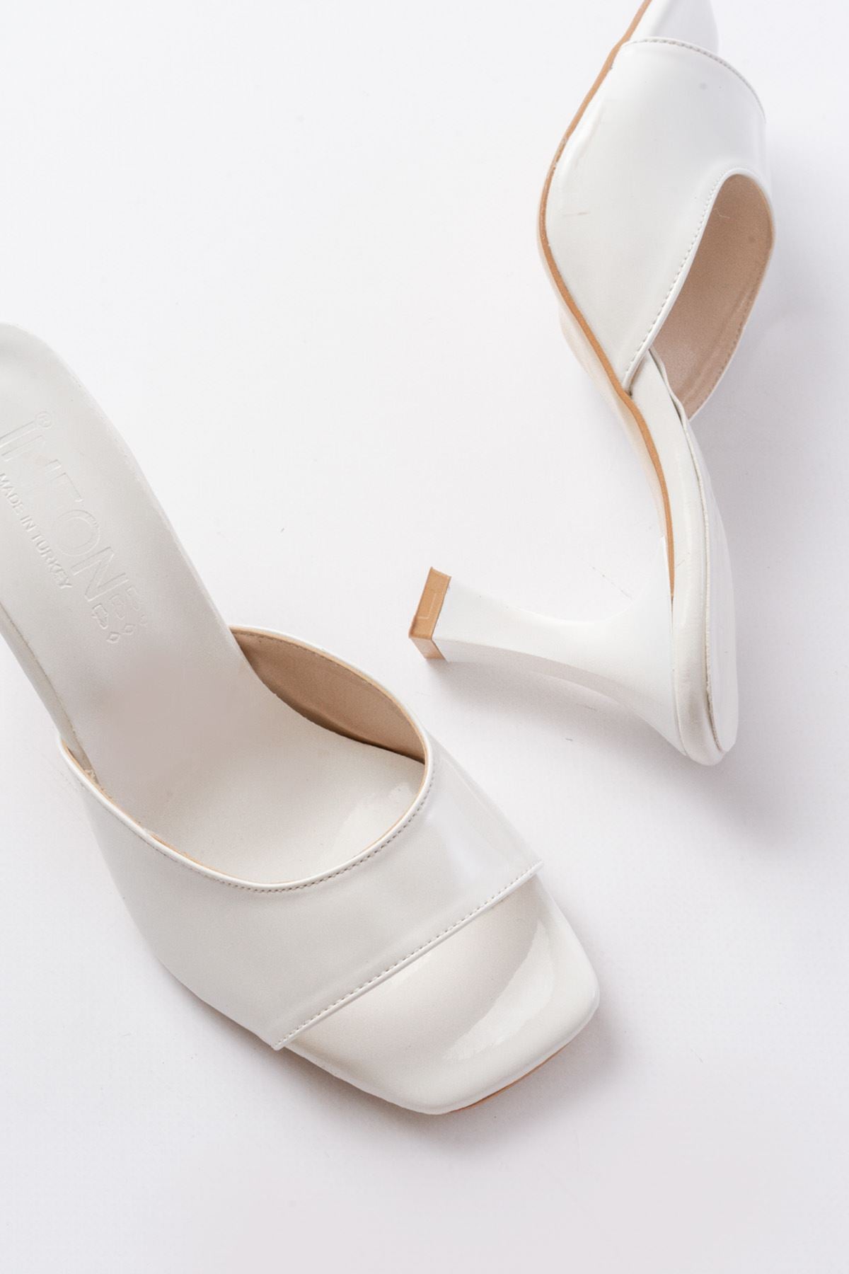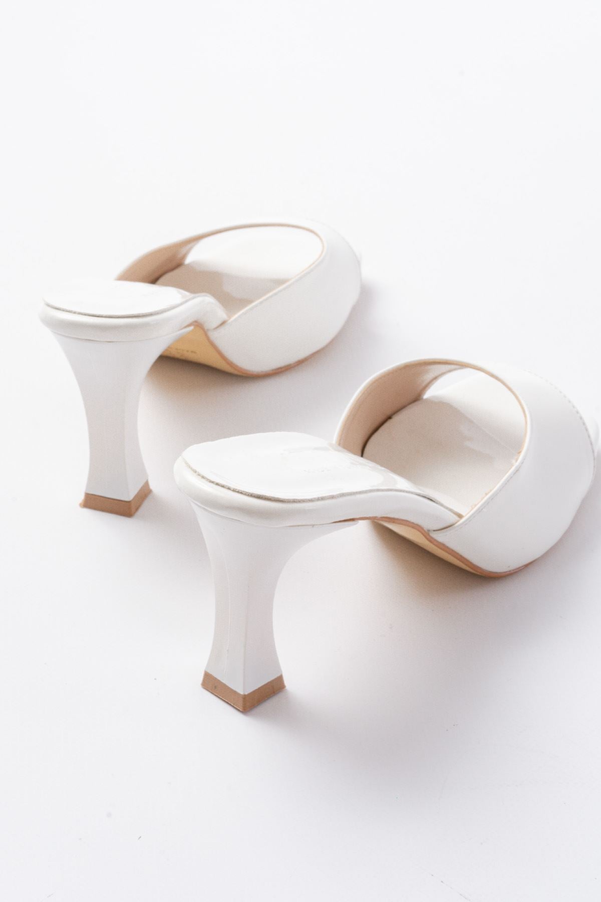 Ayakkabı Aşkı Beyaz Rugan Günlük Topuklu Kadın Terlik