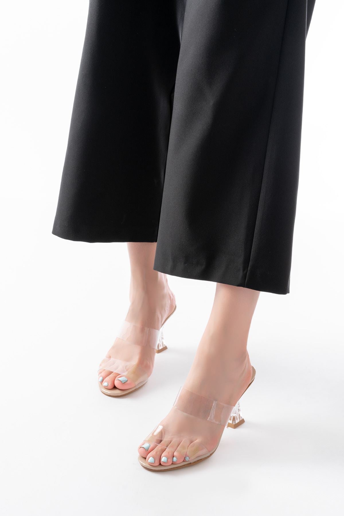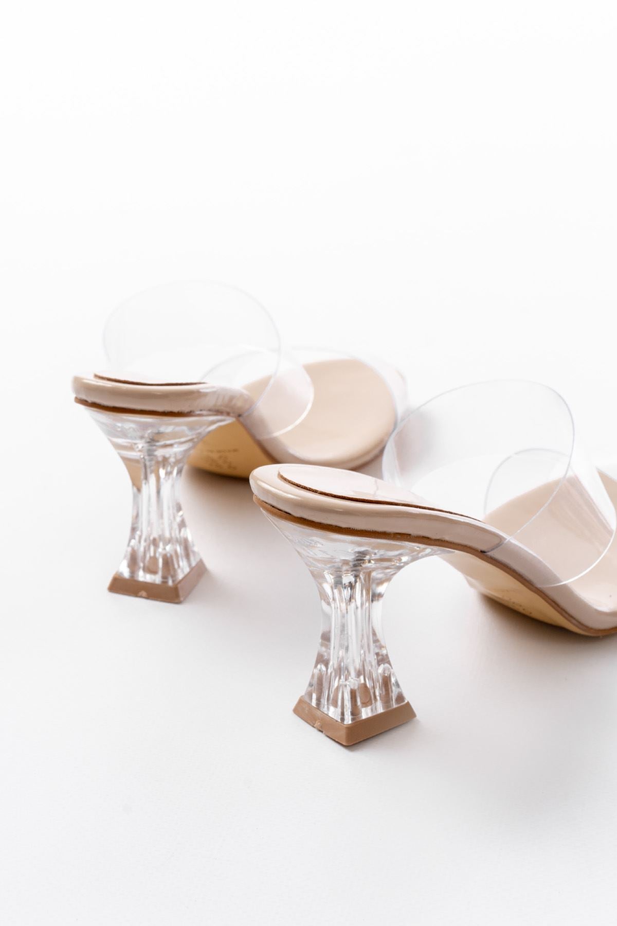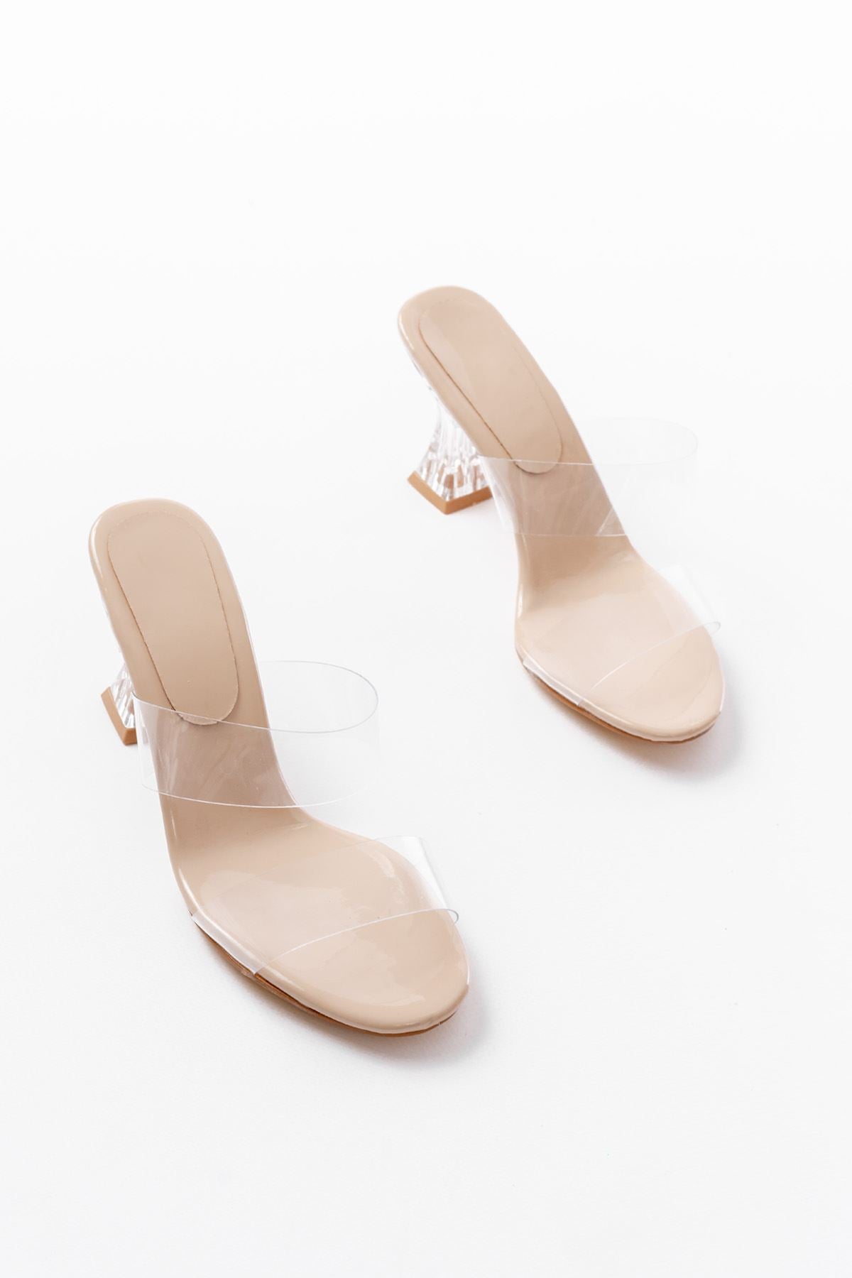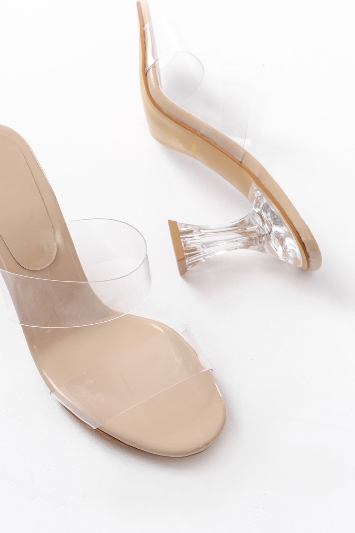 Ayakkabı Aşkı Bej Rugan Çift Bantlı Topuklu Kadın Terlik