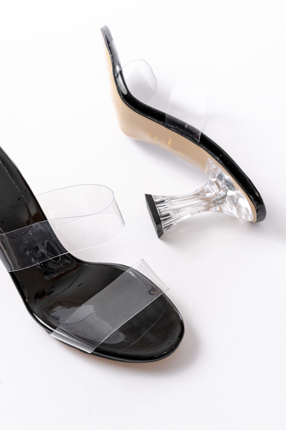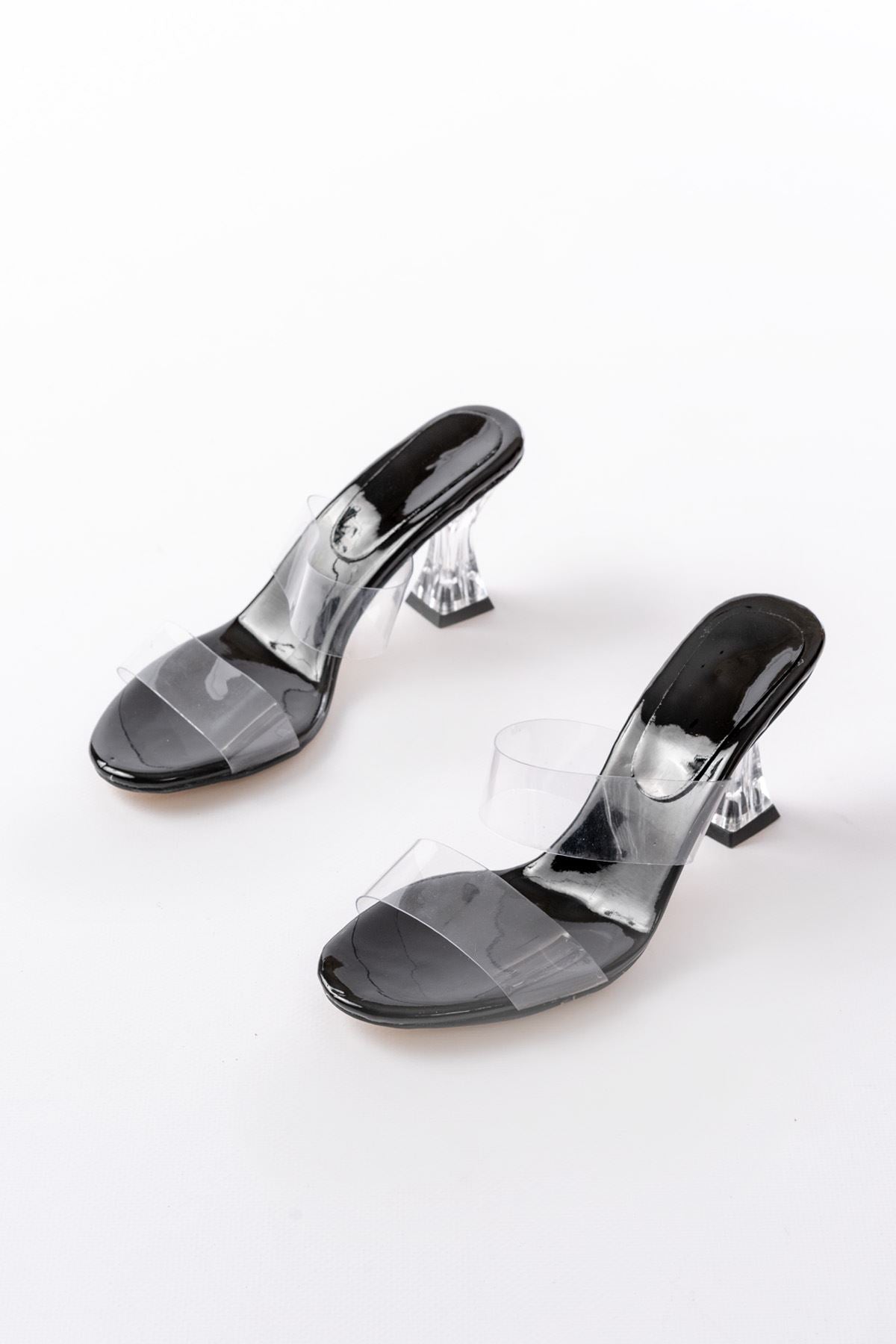 Ayakkabı Aşkı Siyah Rugan Çift Bantlı Topuklu Kadın Terlik