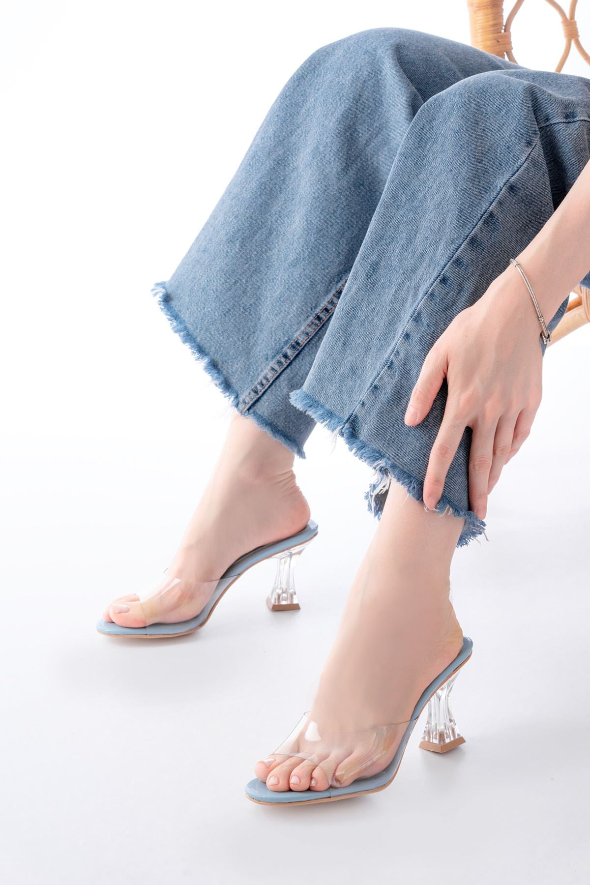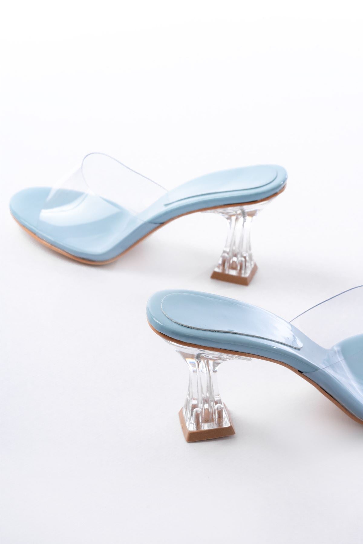 Ayakkabı Aşkı Bebe Mavi Rugan Şeffaf Bantlı Şeffaf Topuklu Yuvarlak Burunlu Kadın Terlik