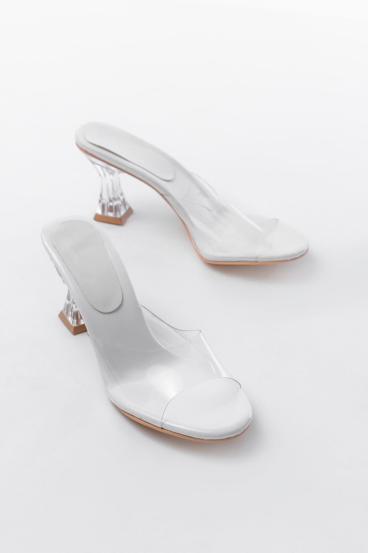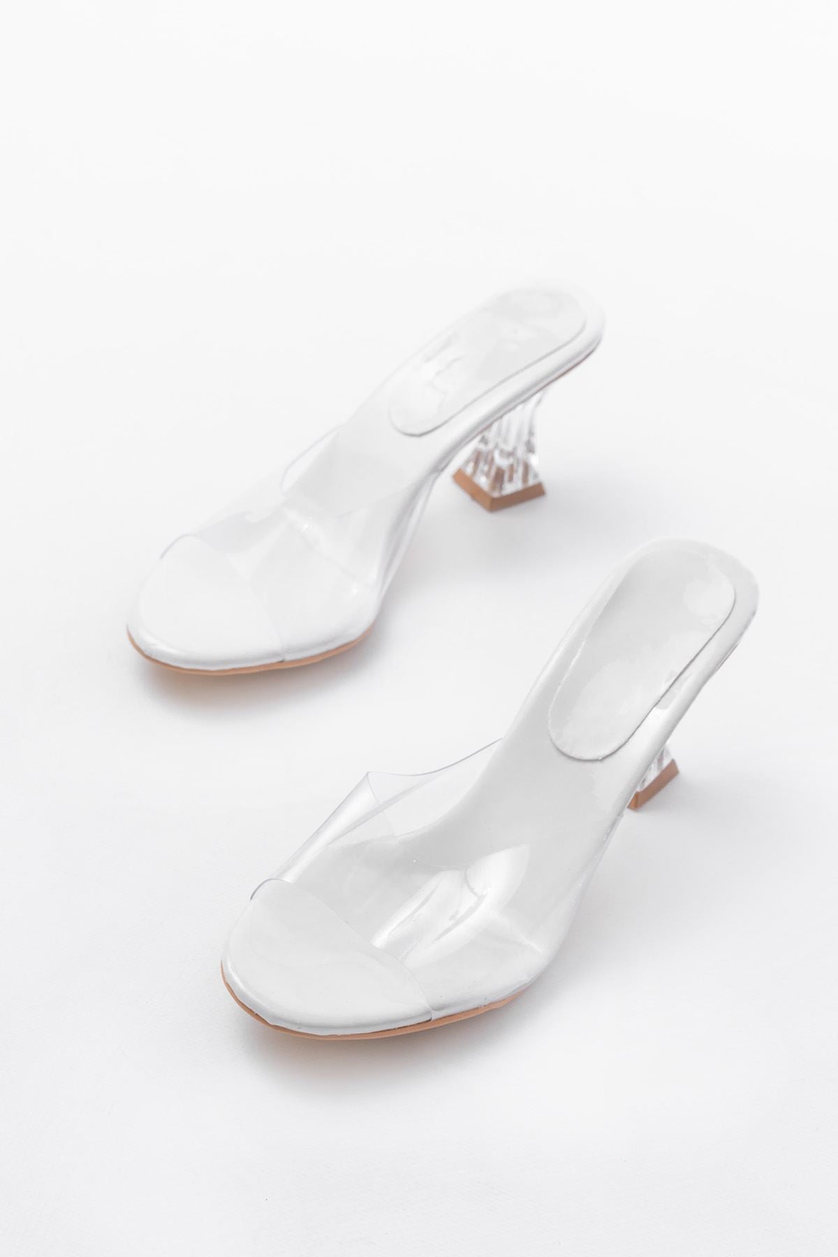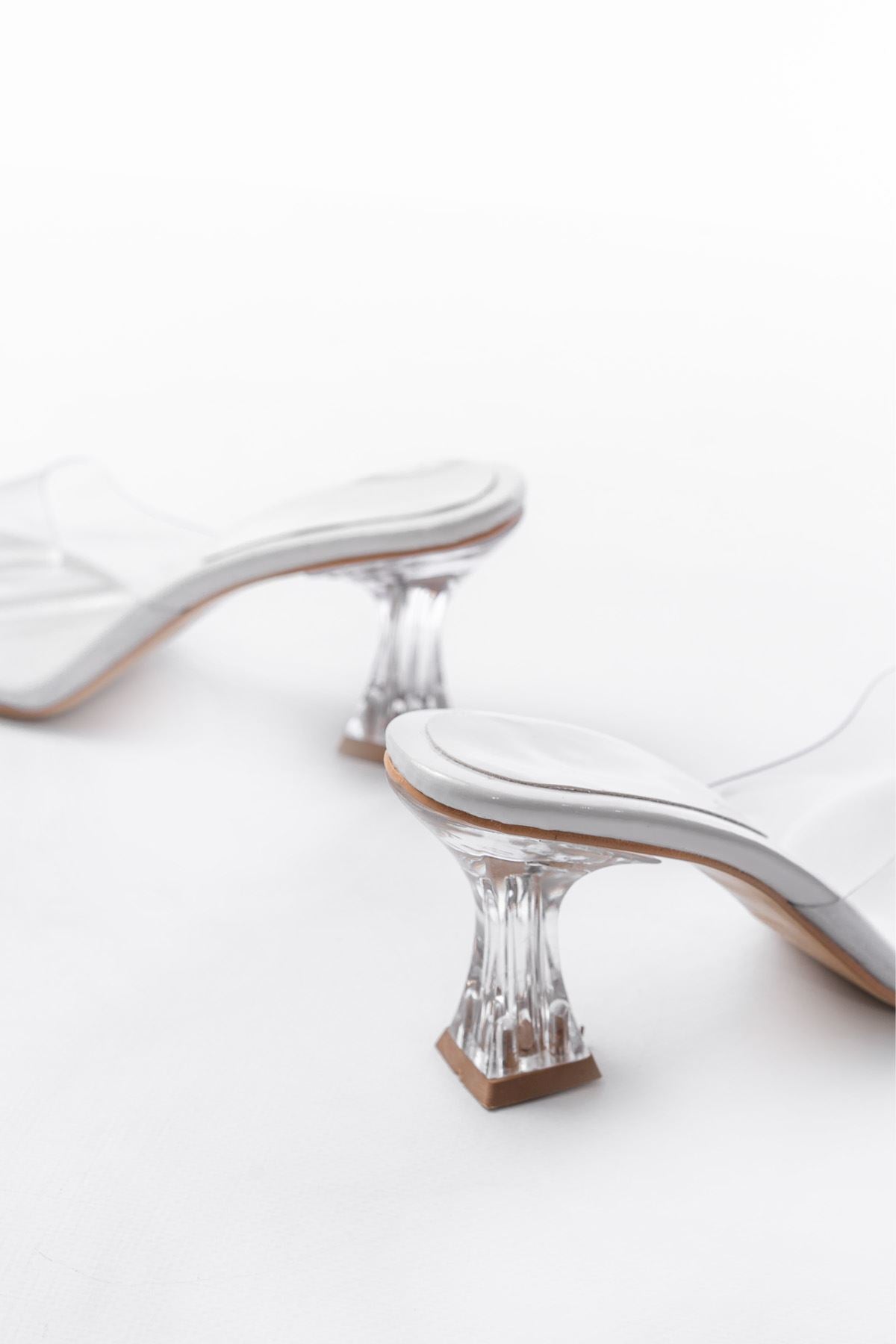 Ayakkabı Aşkı Beyaz Rugan Şeffaf Bantlı Şeffaf Topuklu Yuvarlak Burunlu Kadın Terlik
