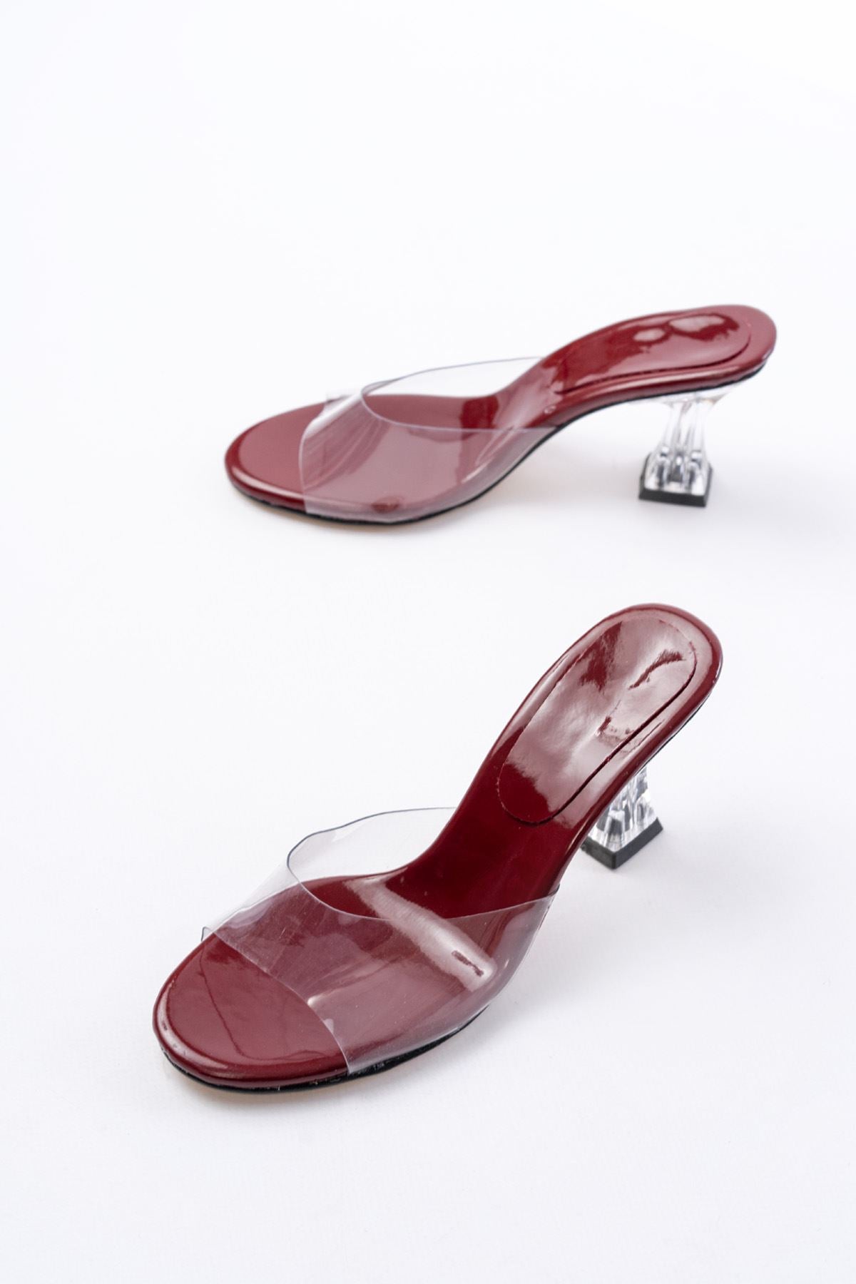 Ayakkabı Aşkı Bordo Rugan Şeffaf Bantlı Şeffaf Topuklu Yuvarlak Burunlu Kadın Terlik