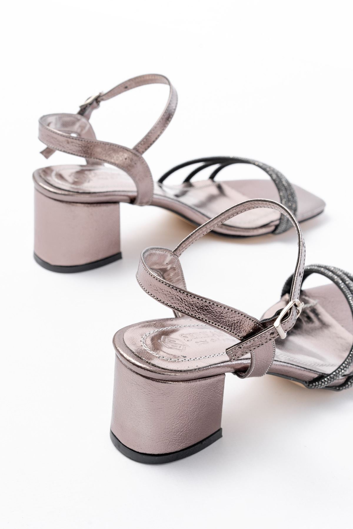 Ayakkabı Aşkı Platin 3 Bantlı Topuklu Kadın Ayakkabı