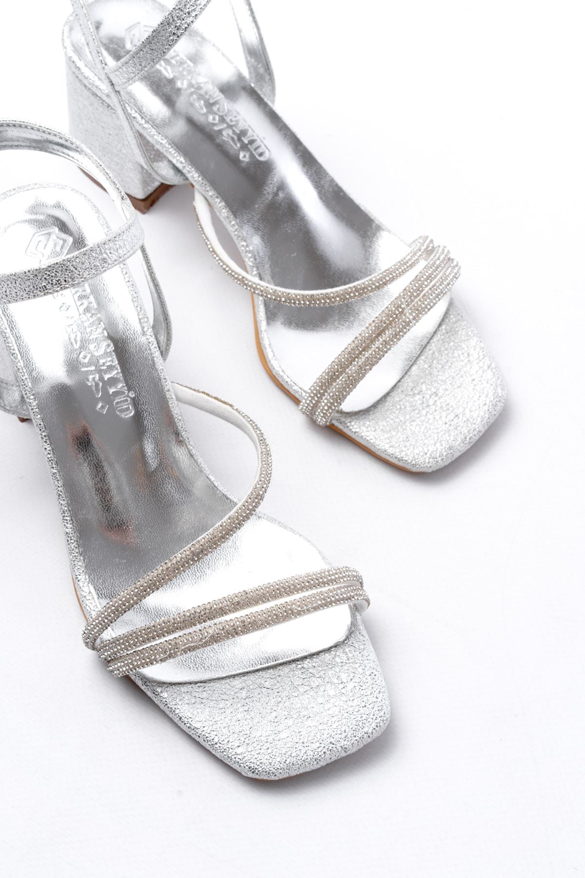 Ayakkabı Aşkı Gümüş Bantlı Taşlı Kalın Şeffaf Topuklu Kadın Ayakkabı