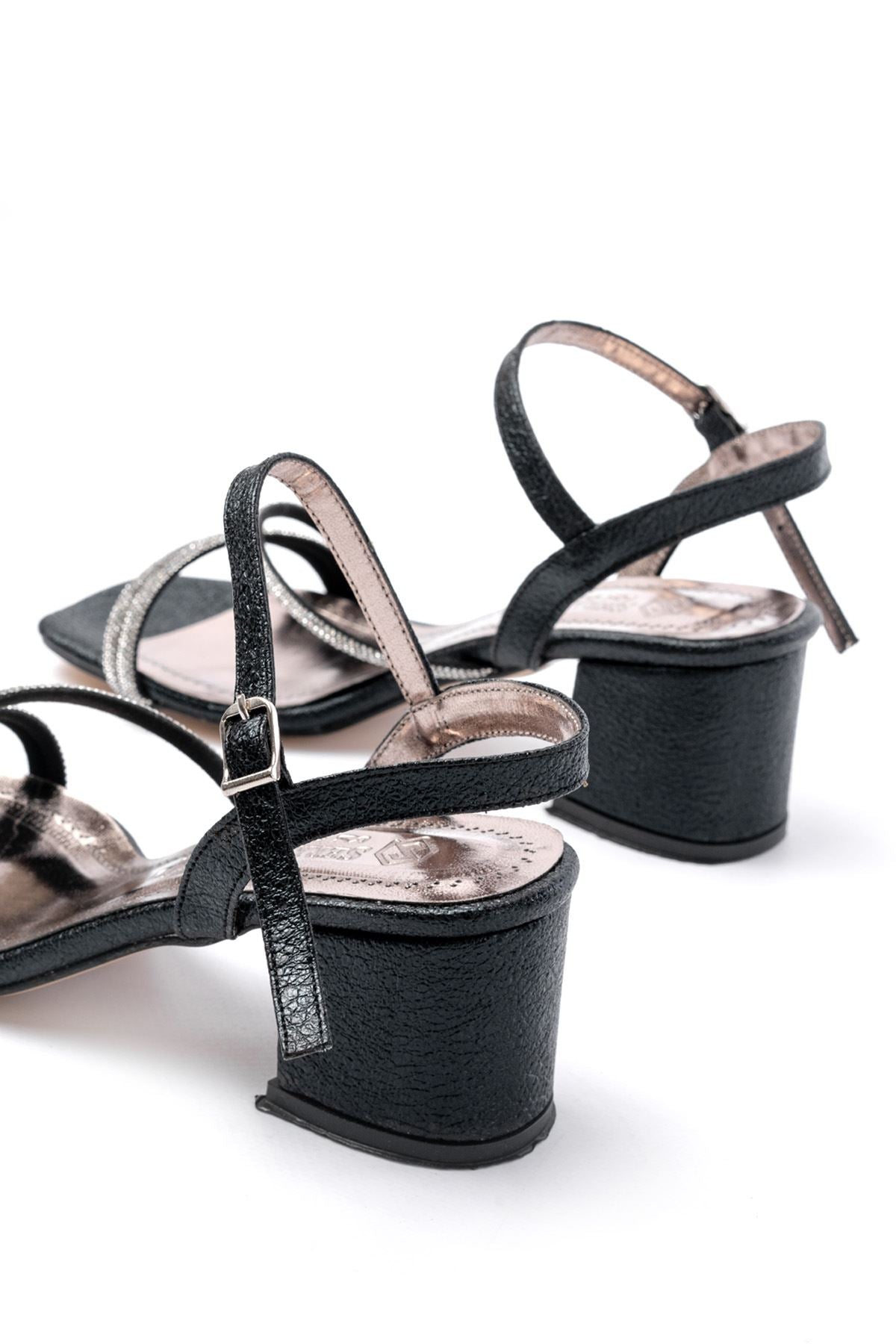 Ayakkabı Aşkı Siyah Bantlı Taşlı Kalın Şeffaf Topuklu Kadın Ayakkabı