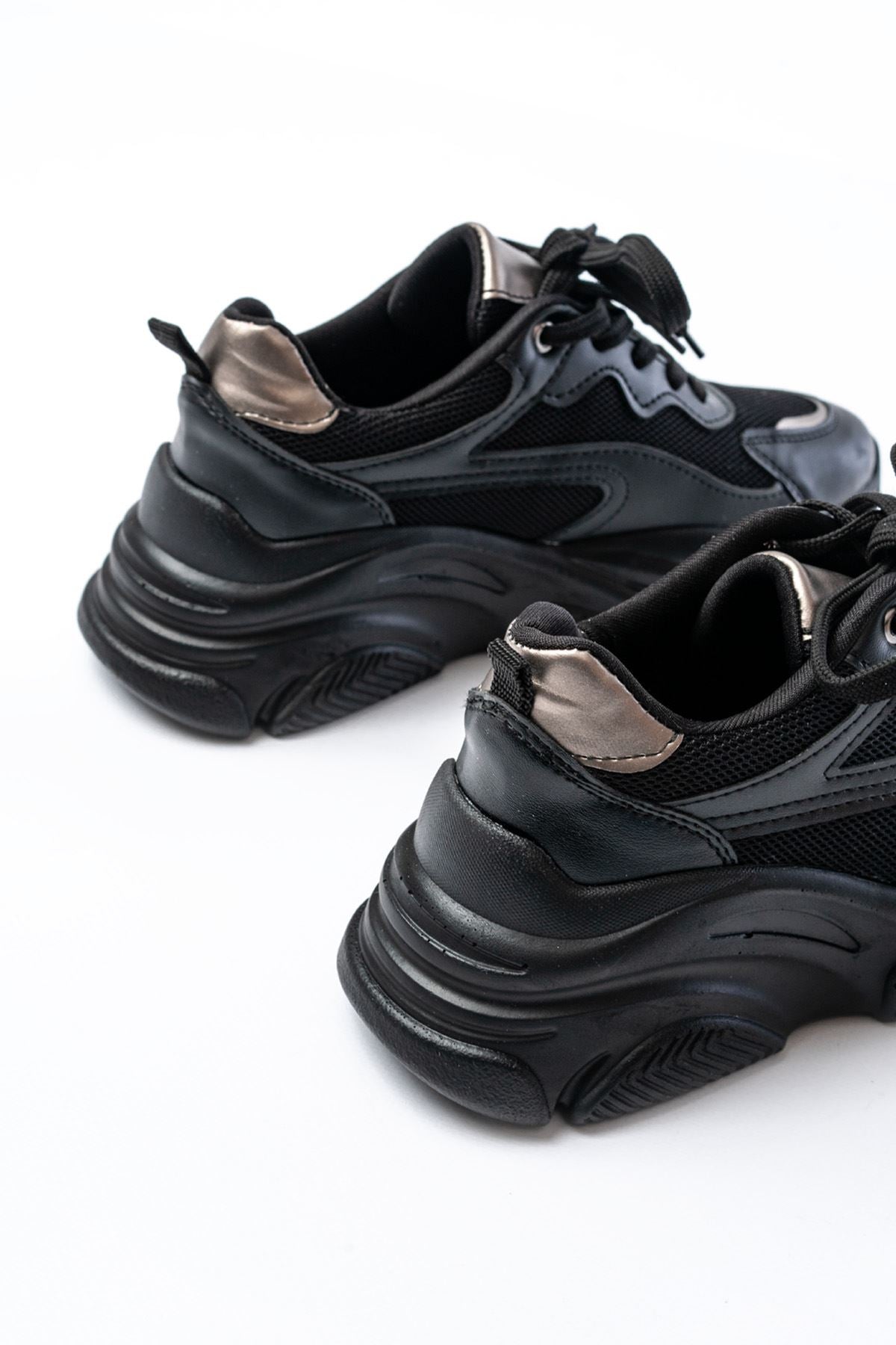 - Şıklık ve konforu bir arada sunan Ayakkabı Aşkı siyah sneaker, günlük kombinlerinize zarif bir dokunuş katar.