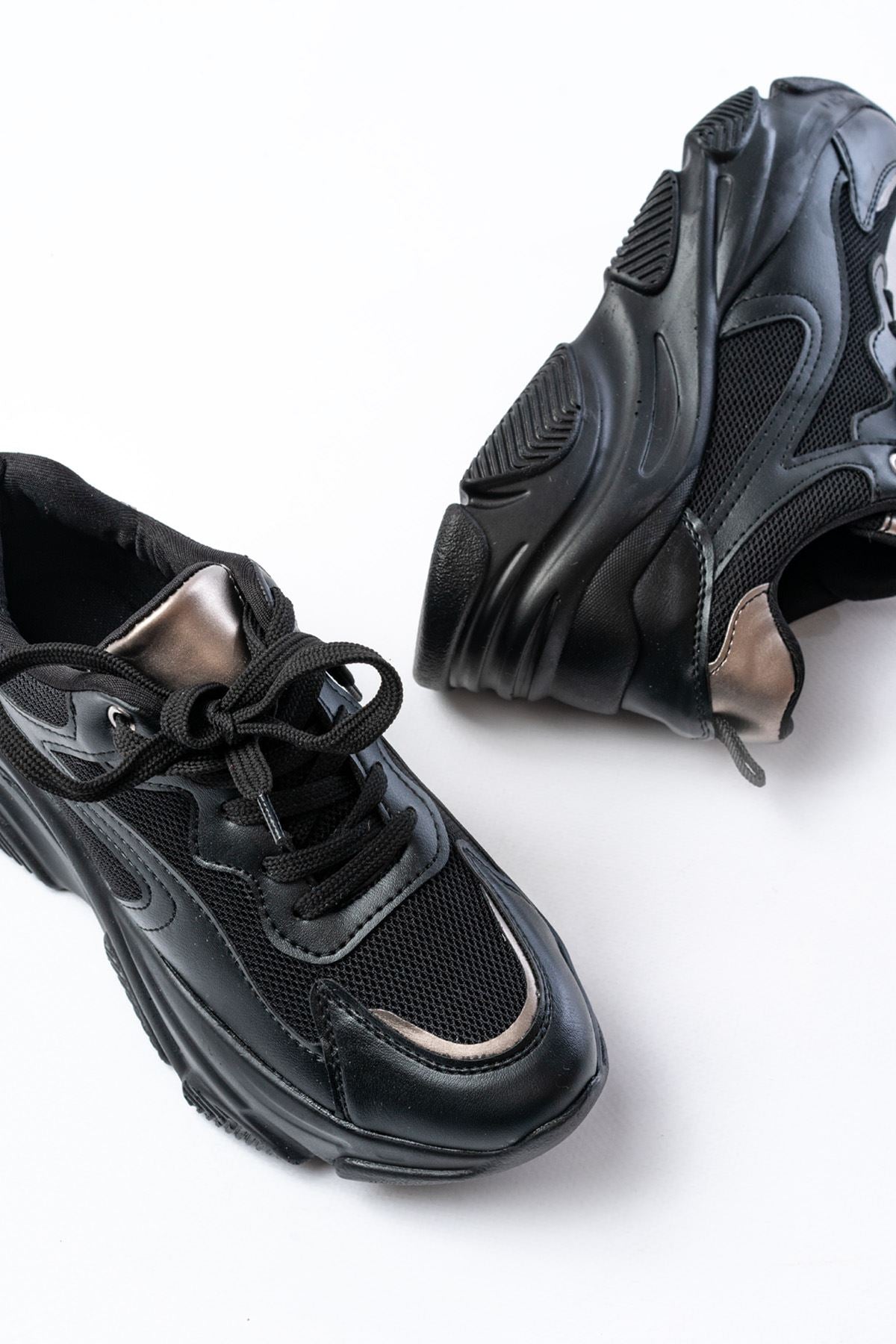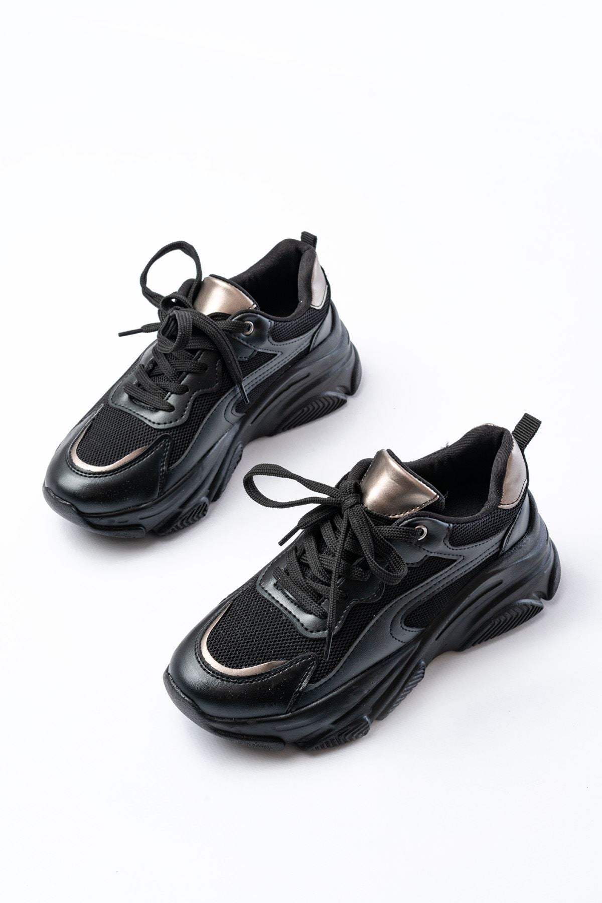 Ayakkabı Aşkı Siyah Platin Bağcıklı Fileli Günlük Spor Ayakkabı