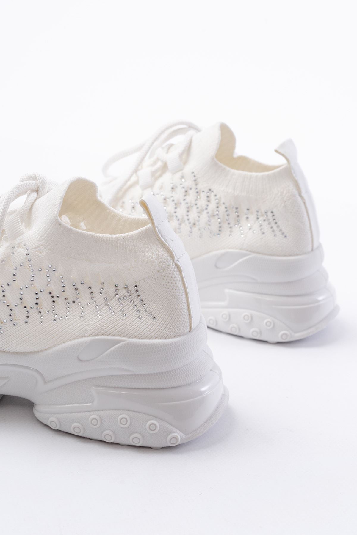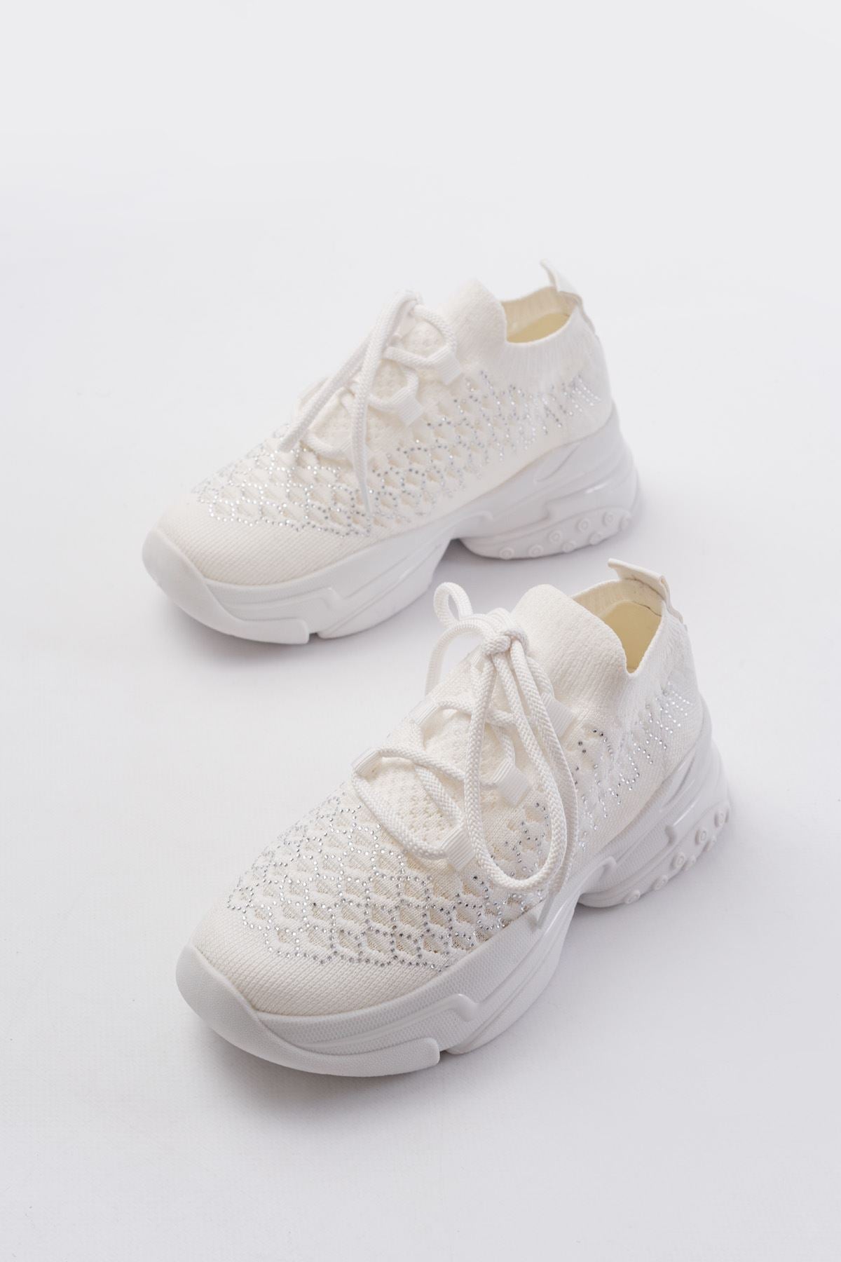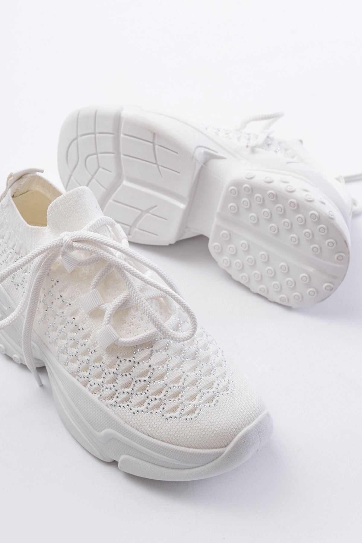 Ayakkabı Aşkı Beyaz Günlük Bağcıklı Fileli Taş Aksesuarlı Kadın Spor Ayakkabı