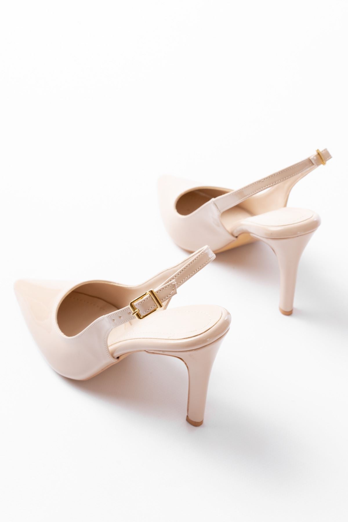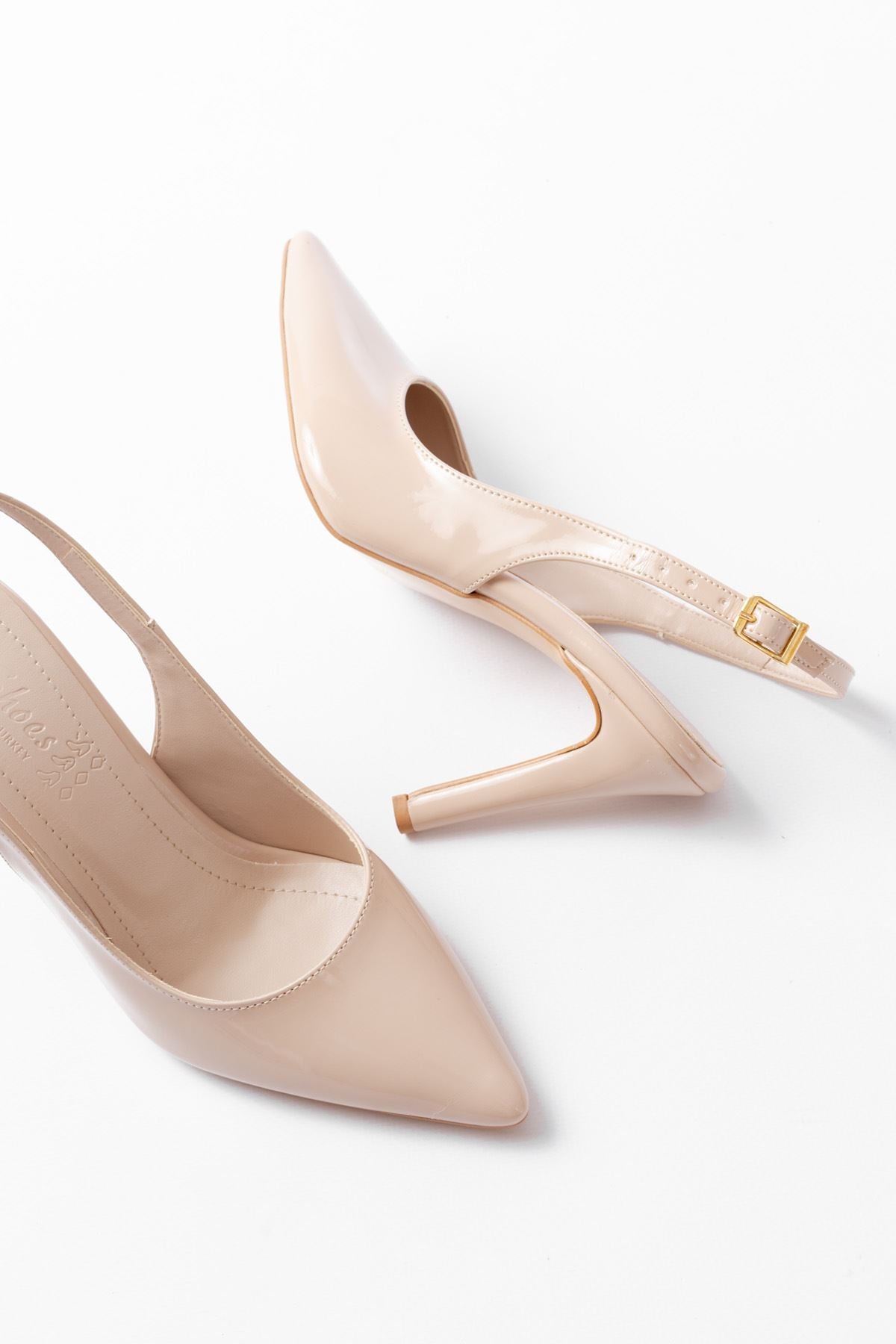 Ayakkabı Aşkı Bej Rugan Günlük Arkası Açık 9 cm Topuklu Kadın Ayakkabı