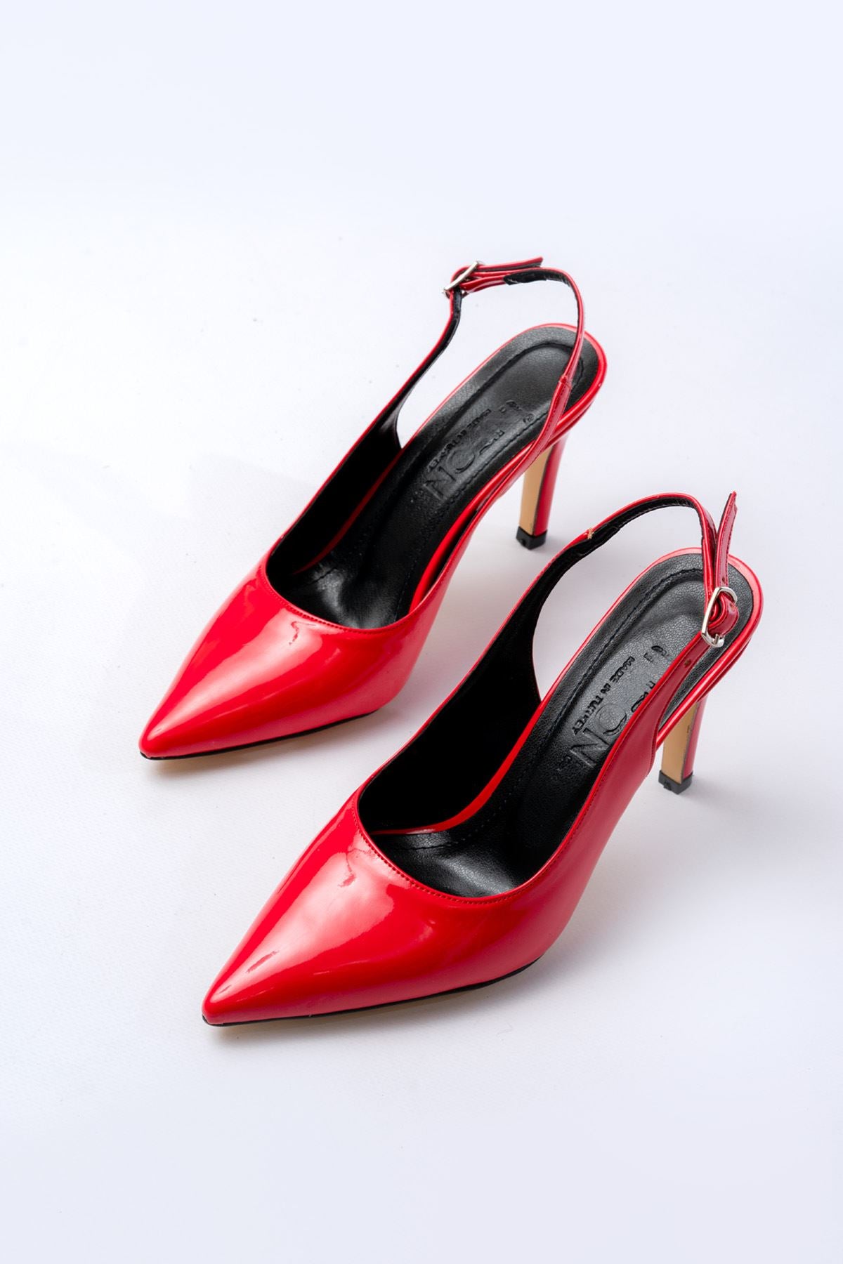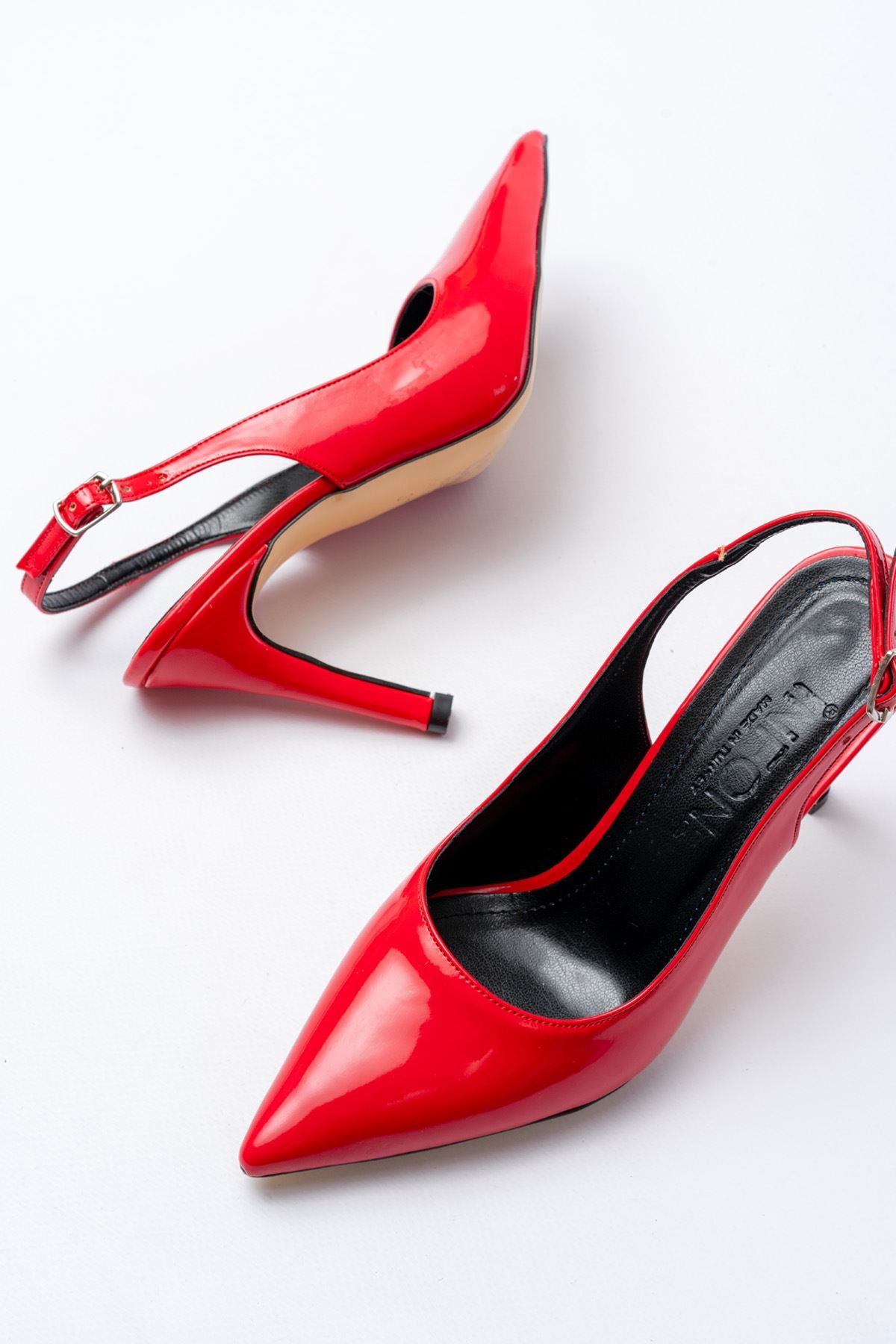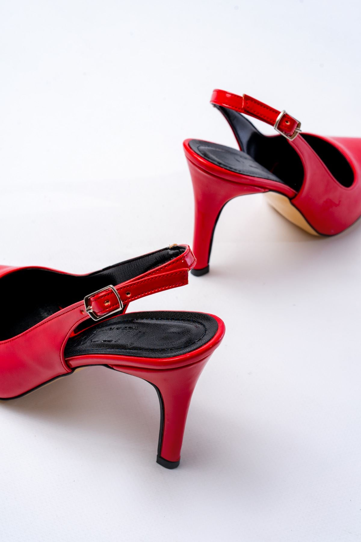 Ayakkabı Aşkı Kırmızı Rugan Günlük Arkası Açık 9 cm Topuklu Kadın Ayakkabı