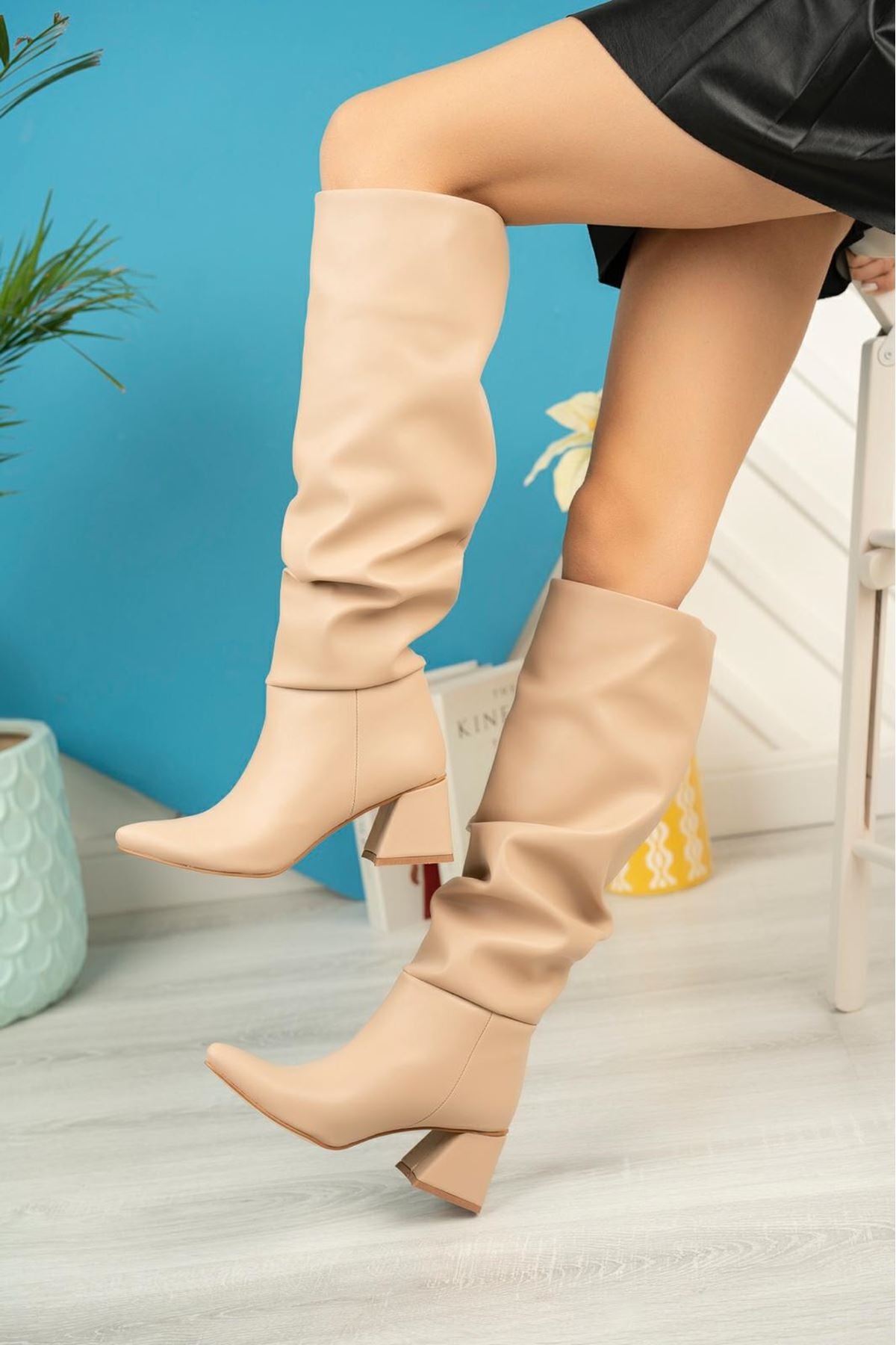 Ayakkabı Aşkı Nut Körüklü Kalın Topuklu Günlük Bayan Çizme