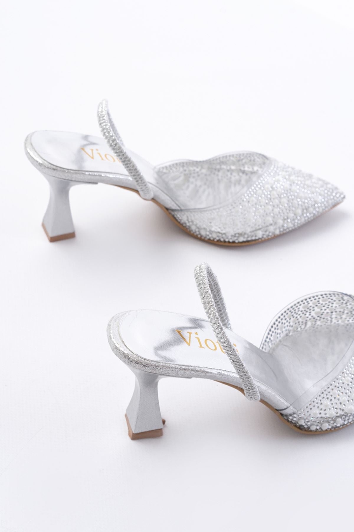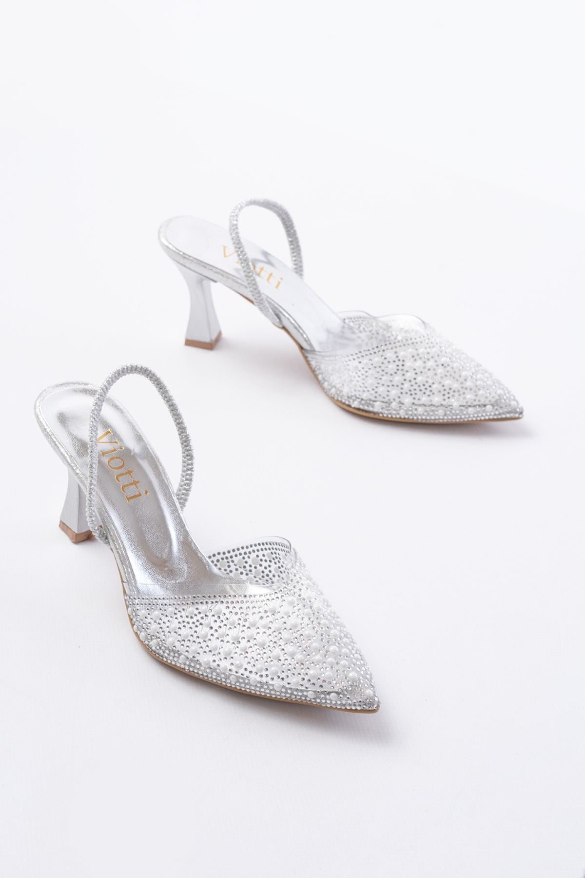 Ayakkabı Aşkı Gümüş Günlük Arkası Açık Taşlı Topuklu Bayan Ayakkabı