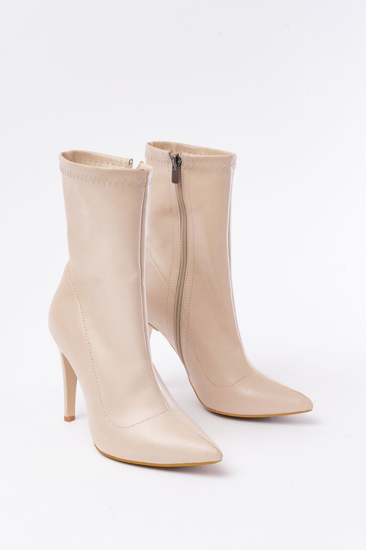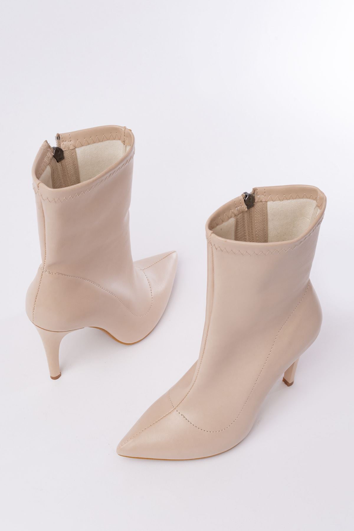 Ayakkabı Aşkı Bej Yüksek İnce Topuklu Fermuarlı Kadın Bot