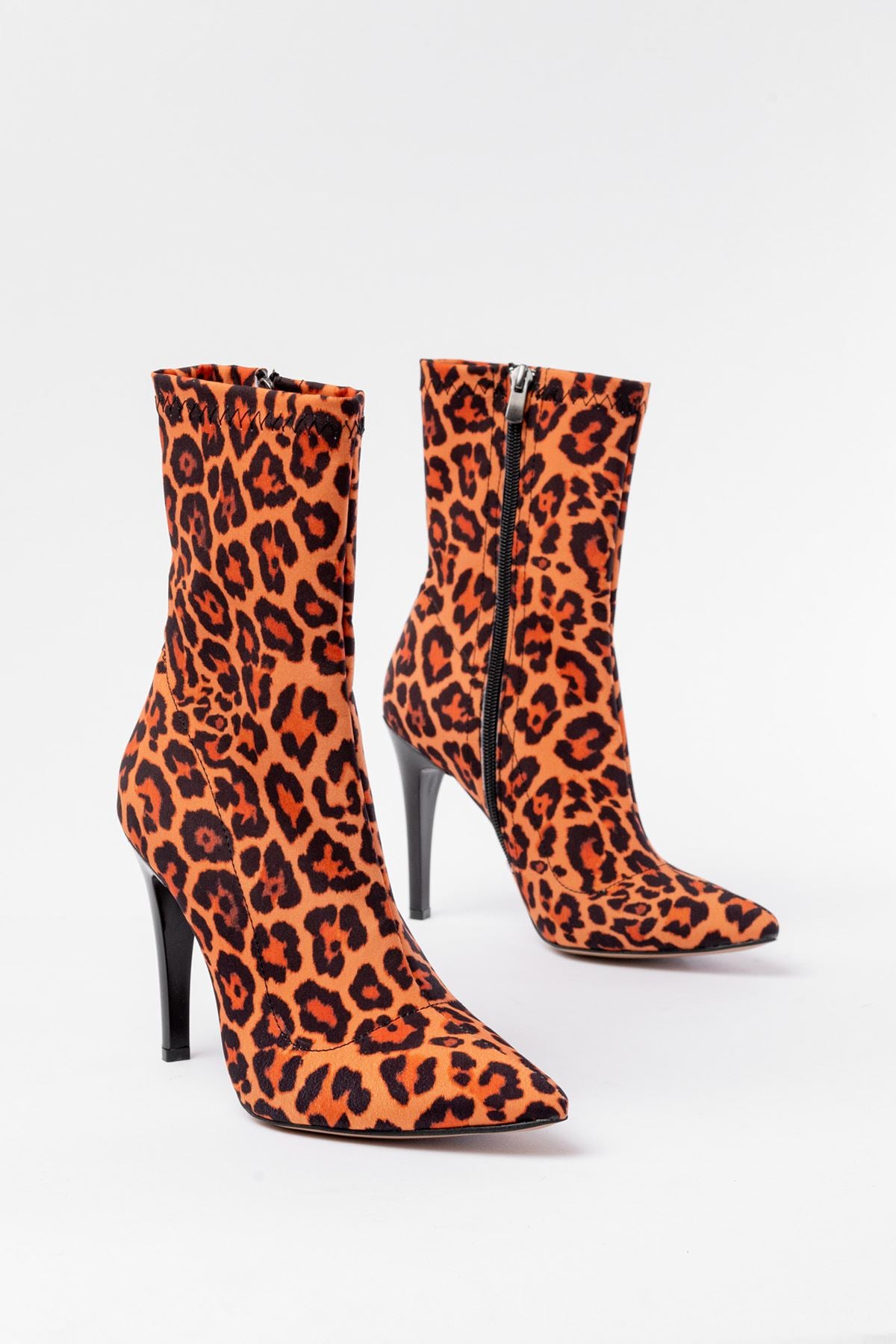 Ayakkabı Aşkı Leopar Yüksek İnce Topuklu Fermuarlı Kadın Bot