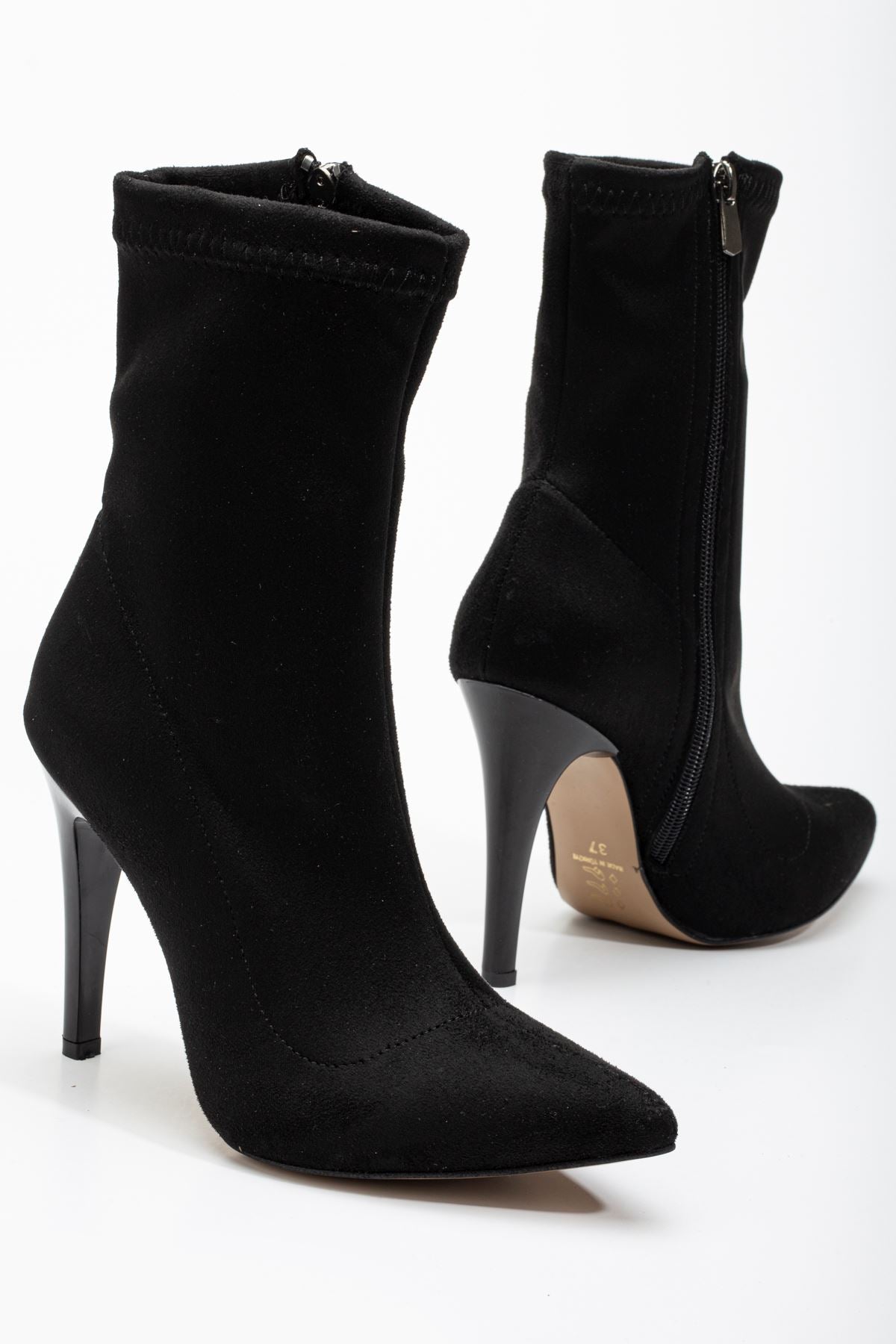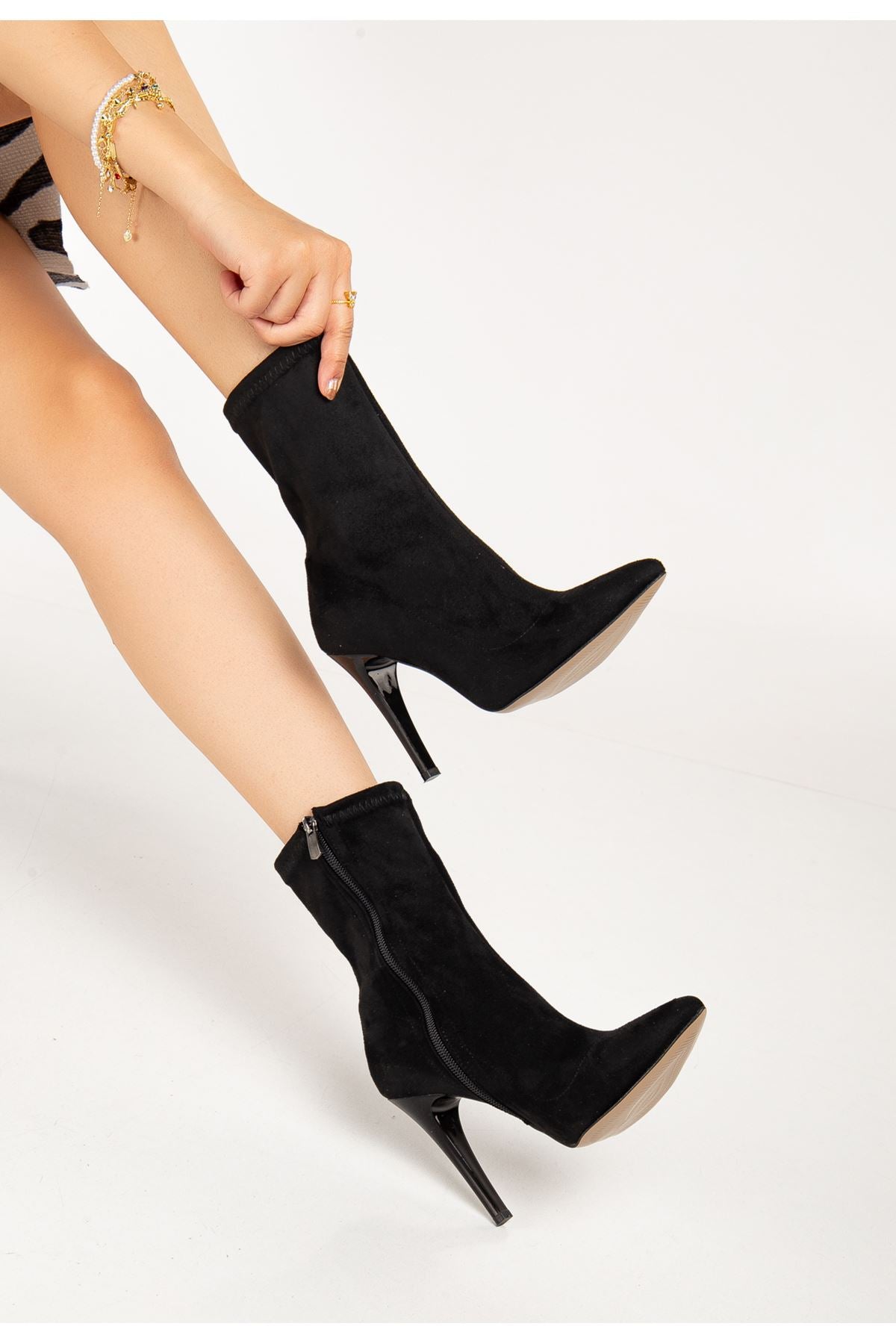 Ayakkabı Aşkı Siyah Süet Yüksek İnce Topuklu Fermuarlı Kadın Bot